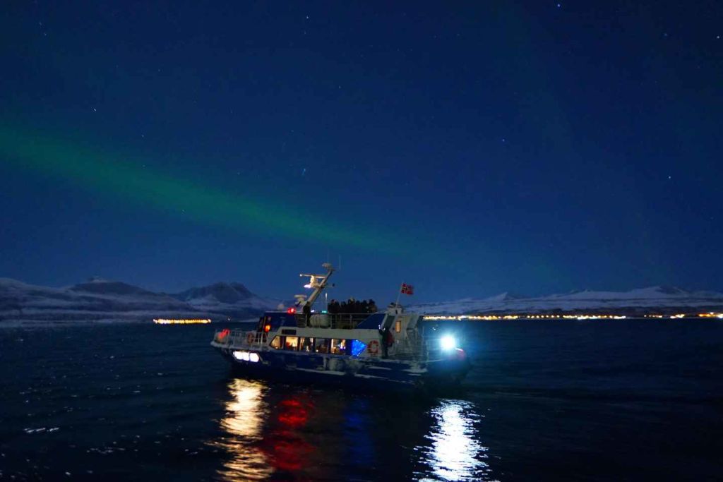 보트는 투어 기간을 고려하여 가능한 한 오랫동안 오로라를 감상할 수 있도록 머물 것입니다. 보트는 23:30에 출발한 것과 동일한 선착장으로 돌아옵니다.
