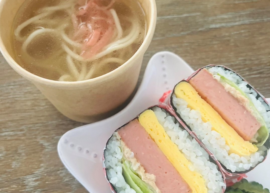 -점심식사 옵션 : 돼지고기 계란 주먹밥, 오키나와 소바
