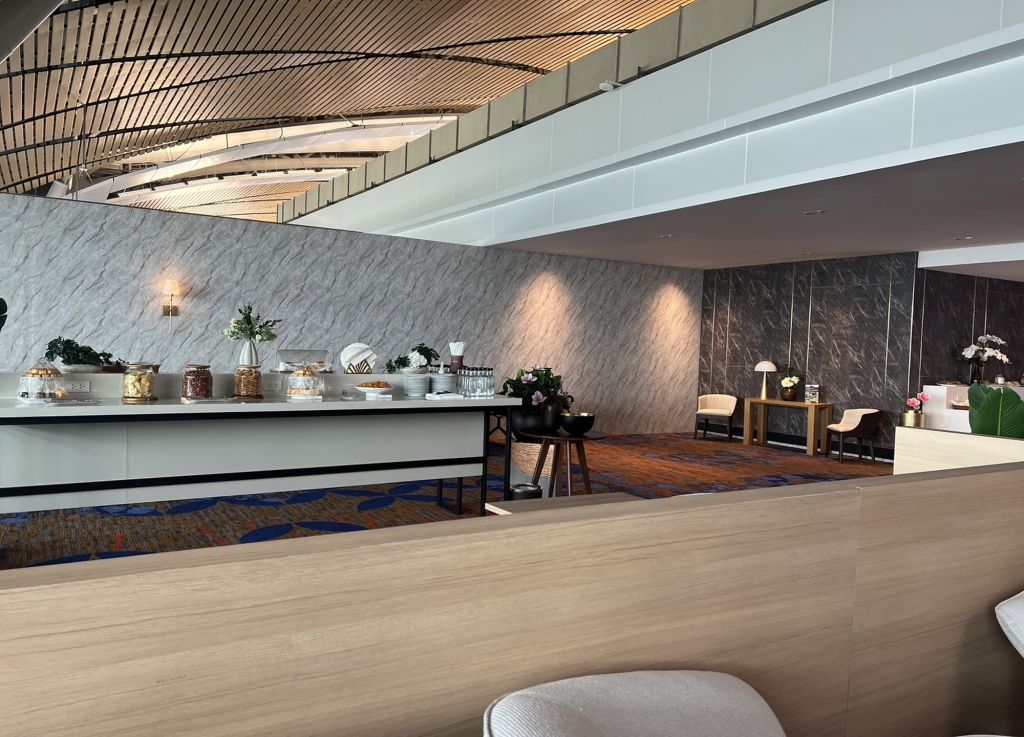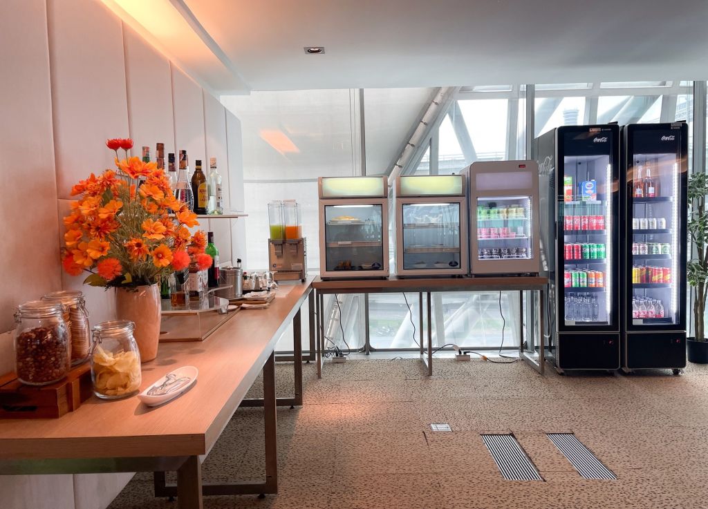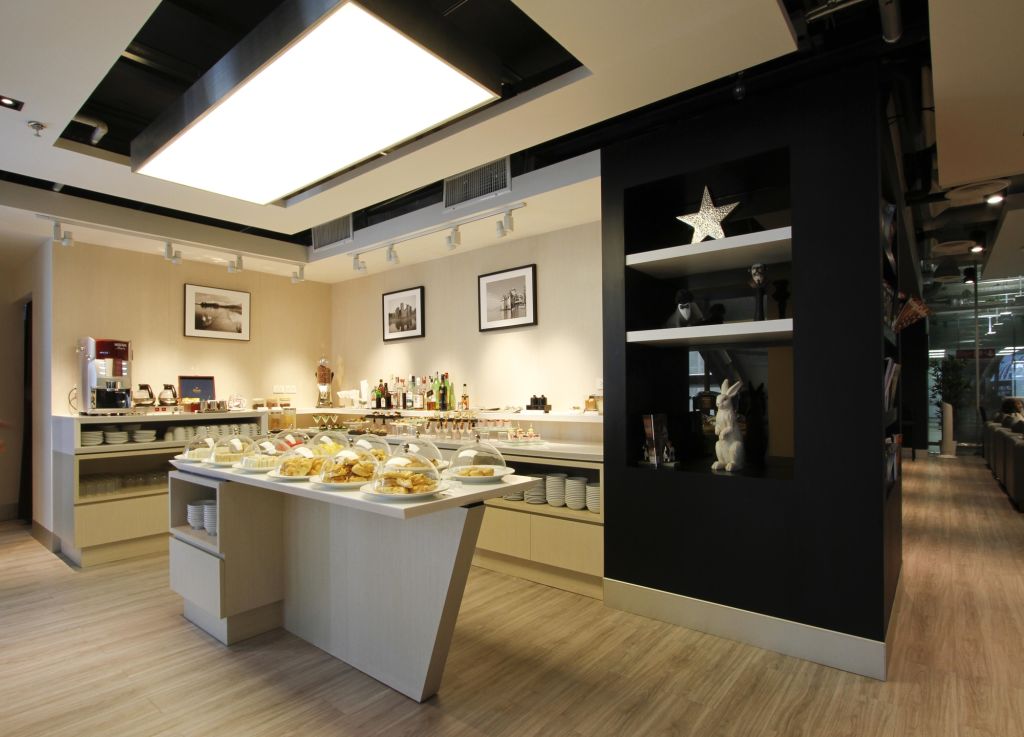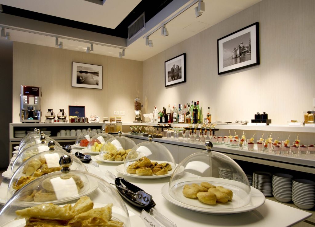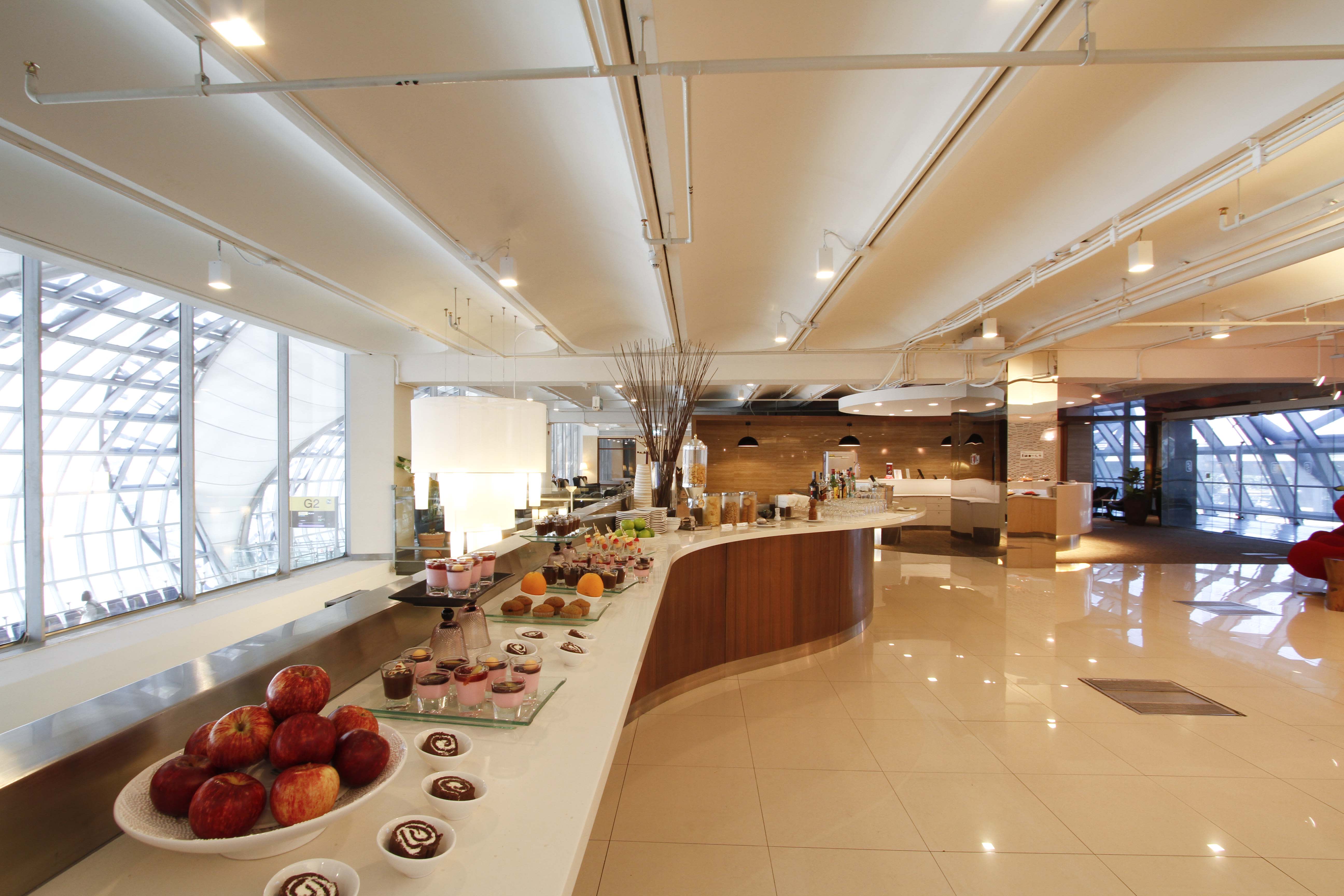 일반 비즈니스 클래스 고객과 같은 공간을 이용하며 뷔페 음식(샐러드, 샌디위치, 빵, 과일 등)이 제공됩니다.