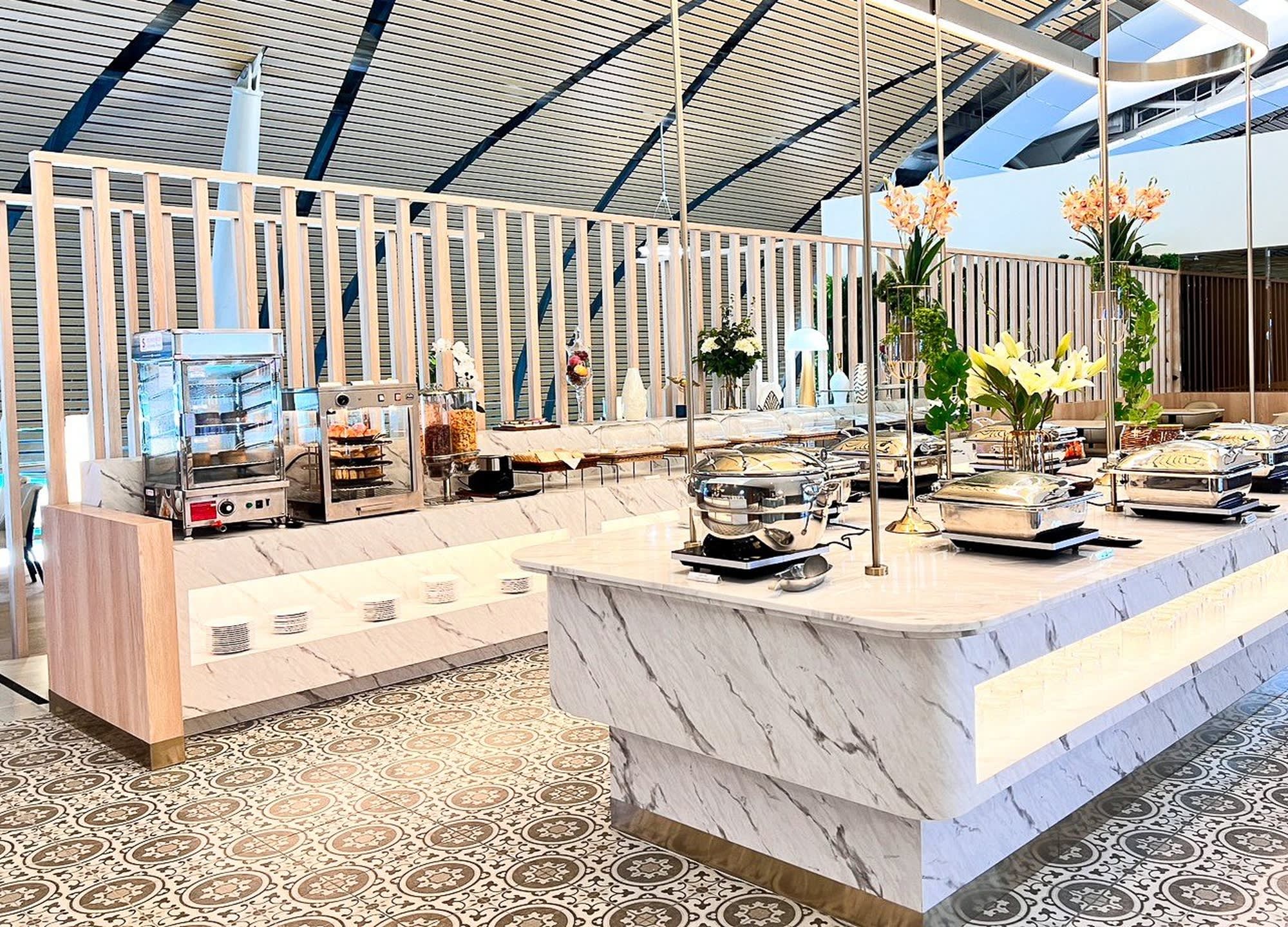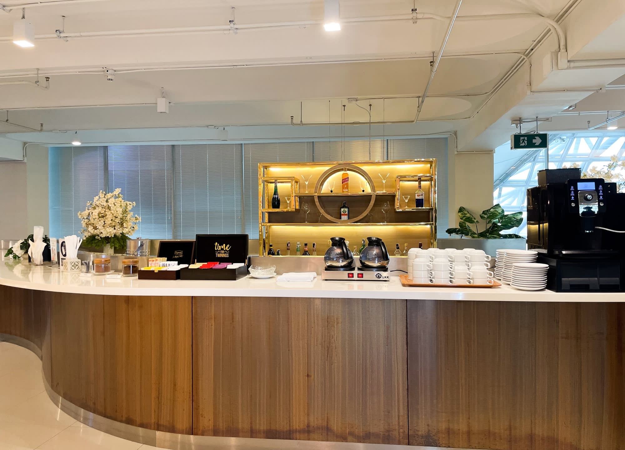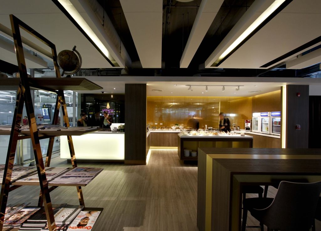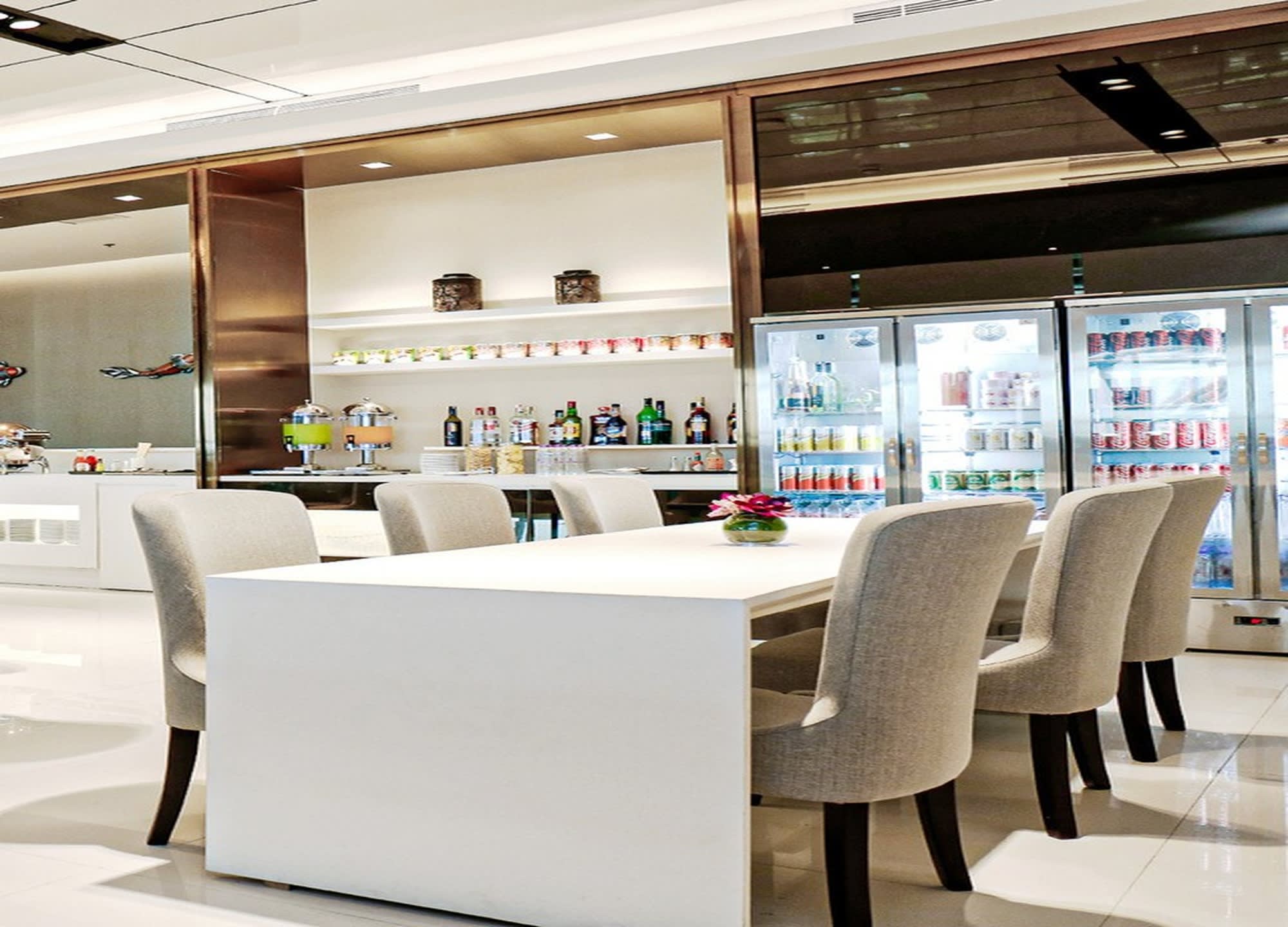 일반 비즈니스 클래스 고객과 같은 공간을 이용하며 뷔페 음식(샐러드, 샌디위치, 빵, 과일 등)이 제공됩니다.
