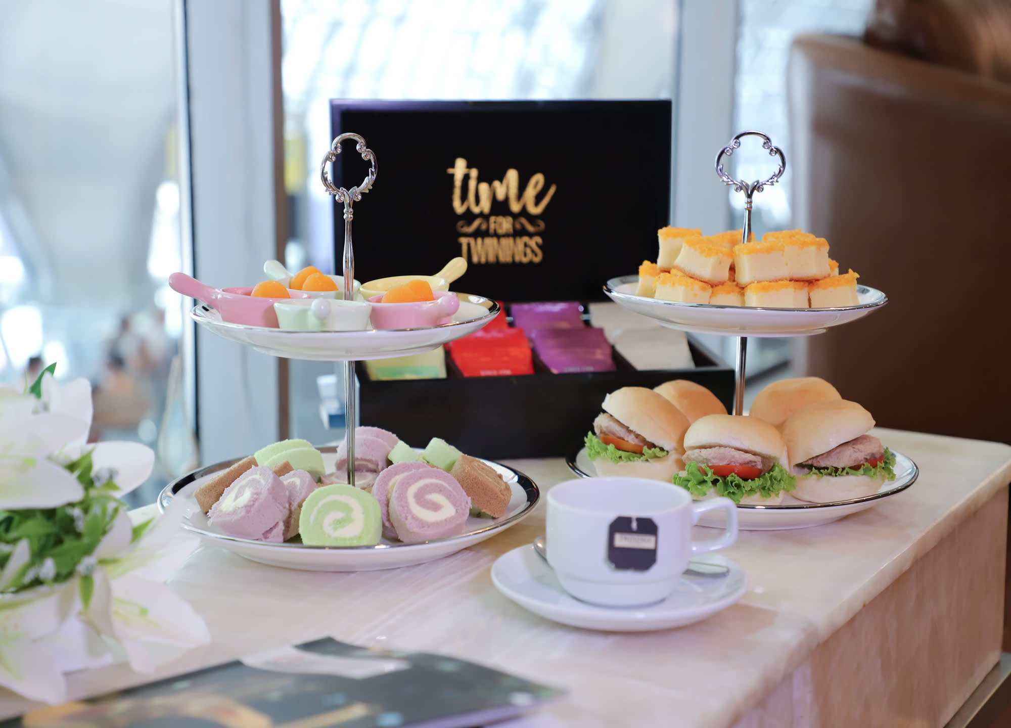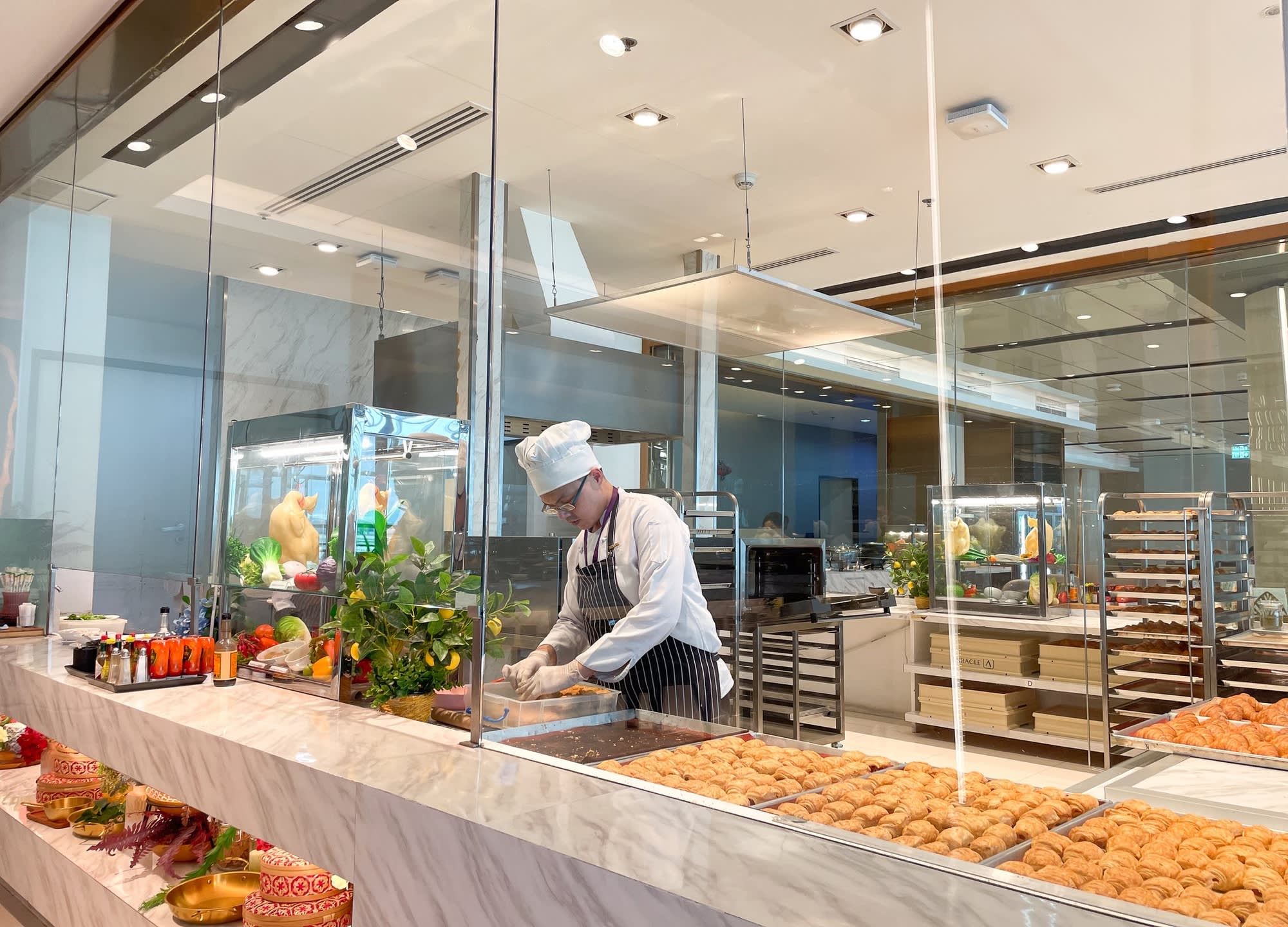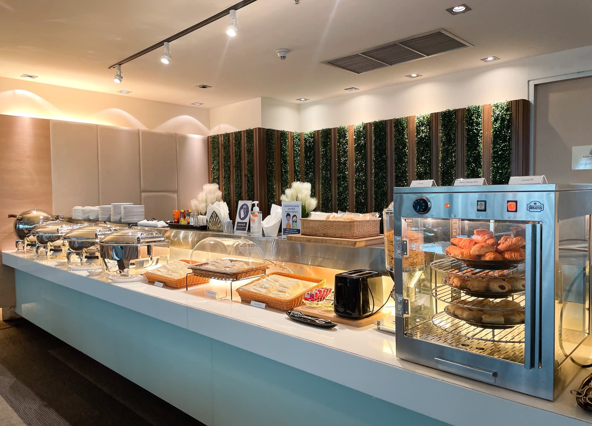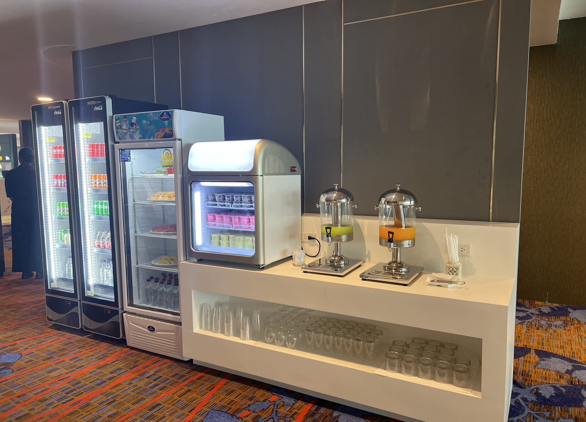 일반 비즈니스 클래스 고객과 같은 공간을 이용하며 뷔페 음식(샐러드, 샌디위치, 빵, 과일 등)이 제공됩니다.