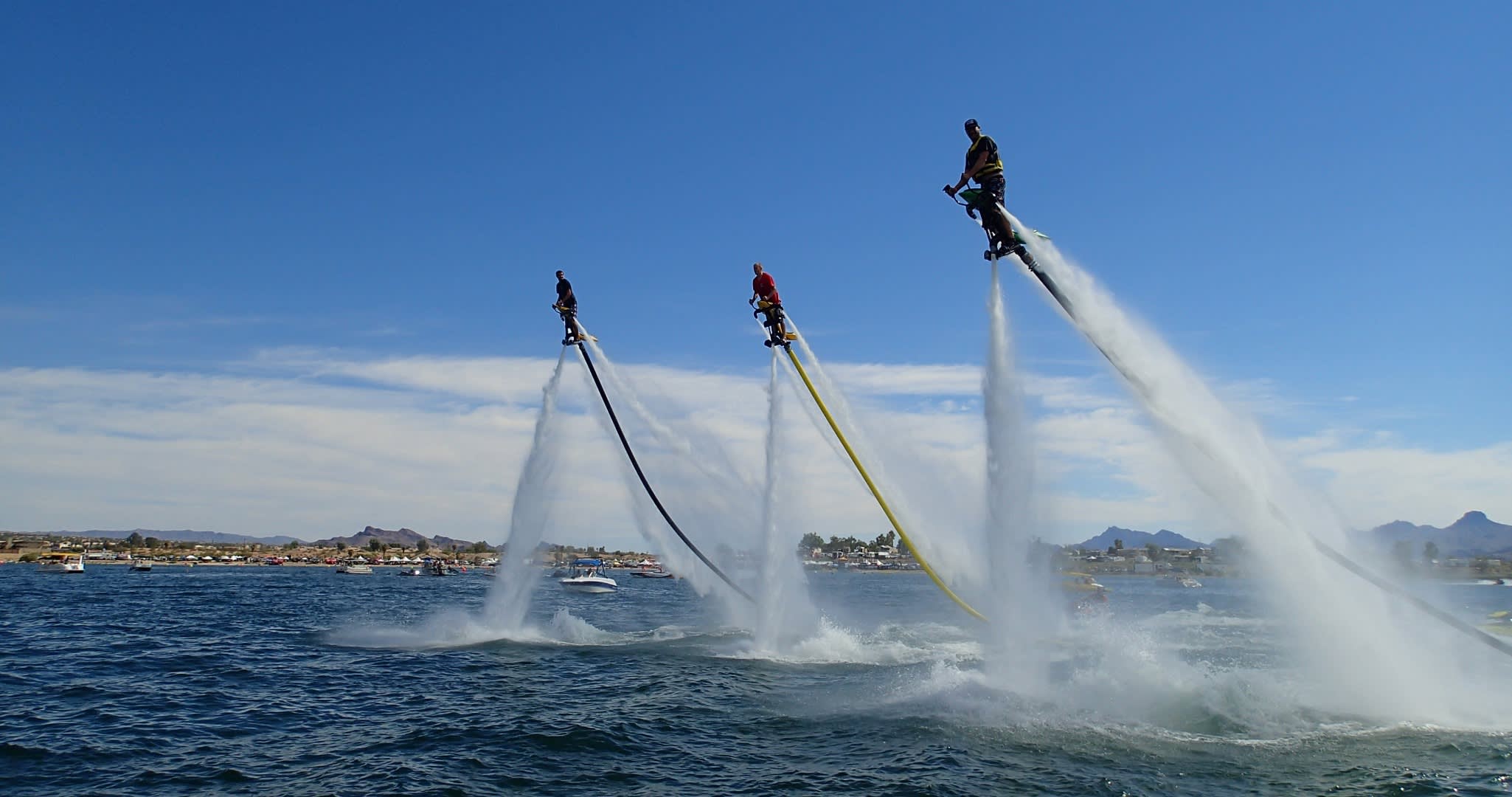 * 제트기가 장착된 오토바이를 타고 수면 위 15-20피트로 밀려올라가는 것을 경험하세요.