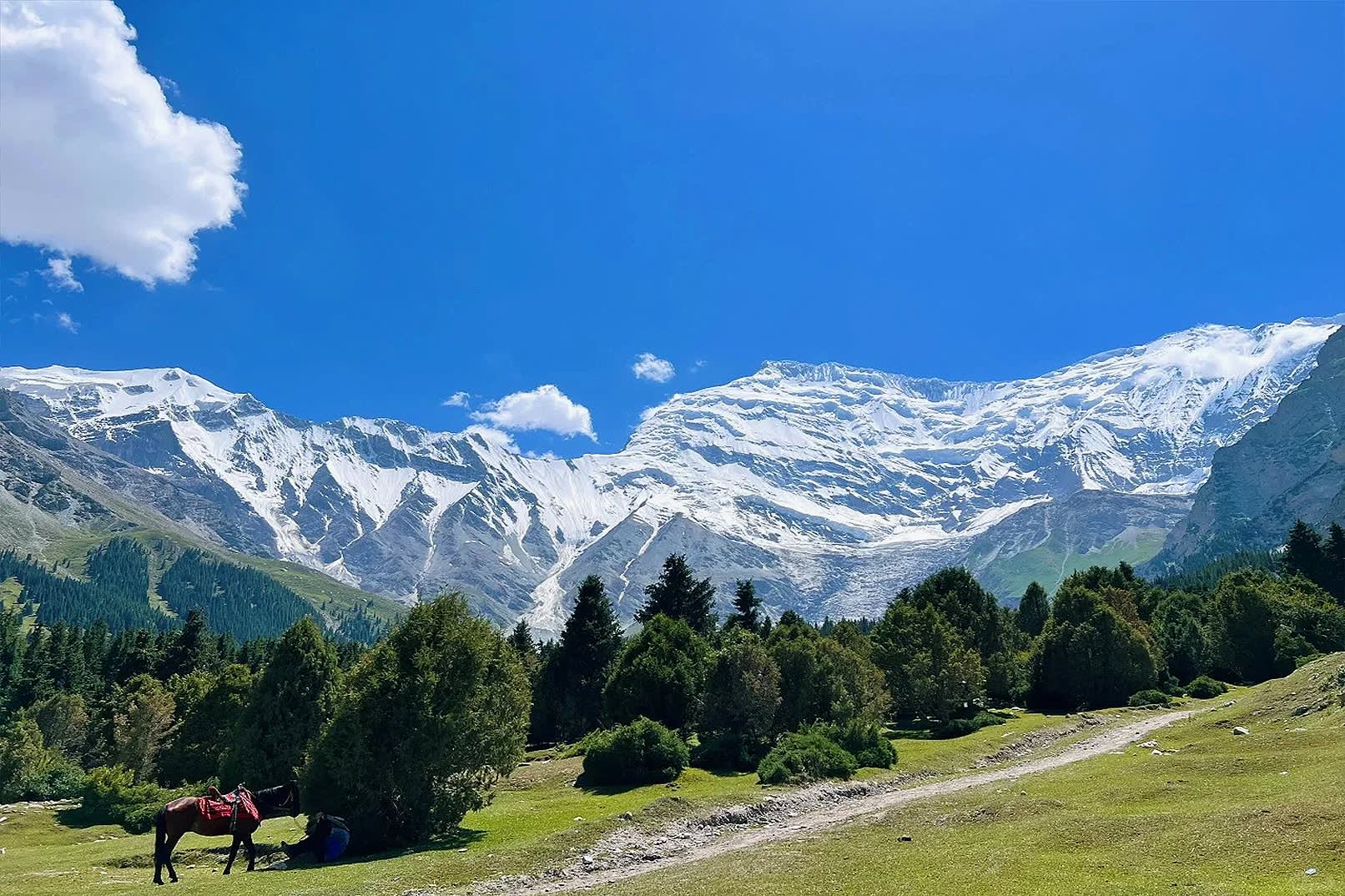 * 【오이타그 빙하 공원】빙하, 붉은 산, 초원이 한데 어우러져 마치 《겨울왕국》 세계에 들어온 듯한 느낌을 줍니다. 【무스타그 빙하 공원】 "빙산의 아버지" 무스타그 봉우리와 0m 거리