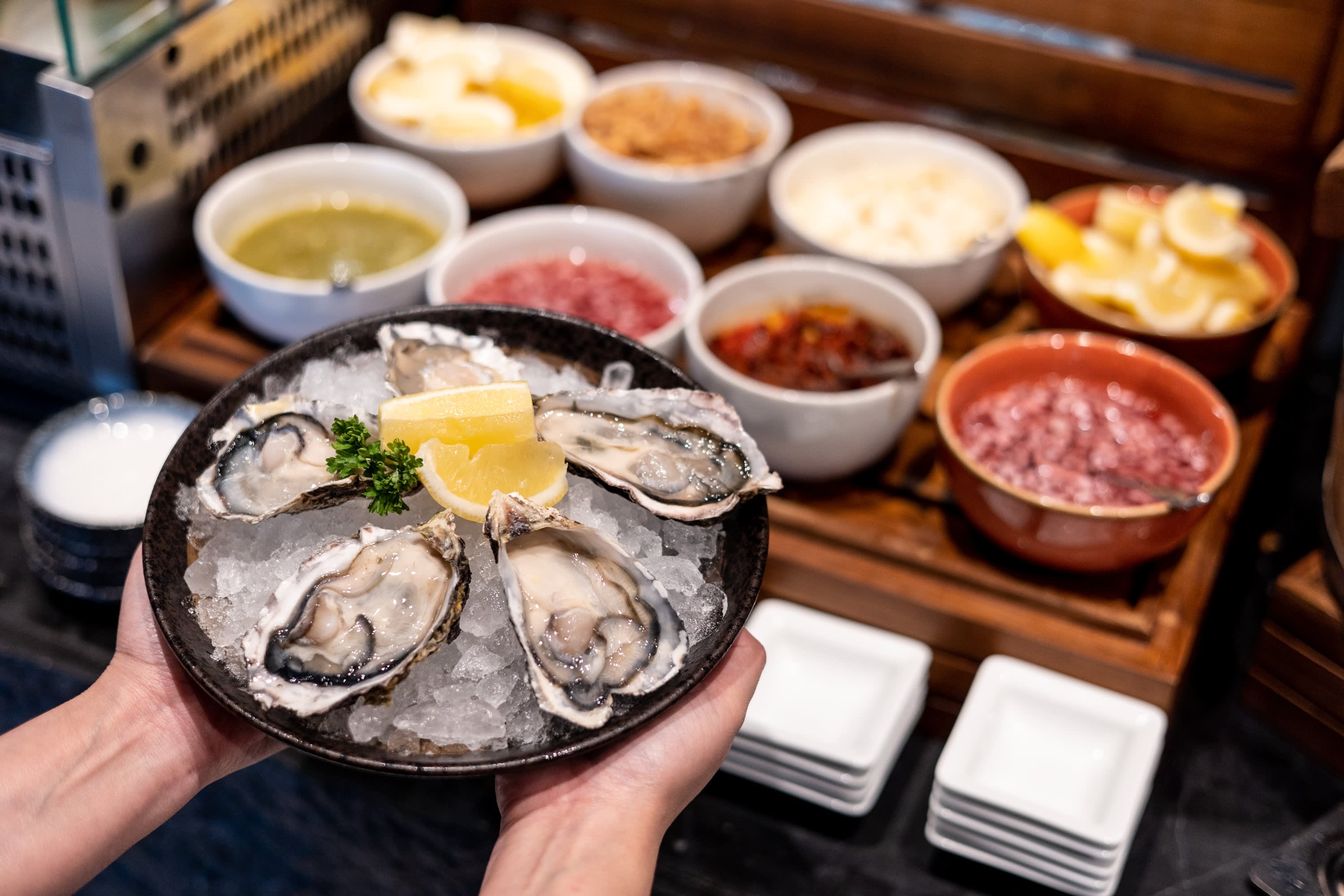 각 스테이션을 탐험하면서 계절별 특선 요리, 탐닉적인 조각 스테이션, 예술적으로 플레이팅된 요리에 기뻐할 것입니다. 오픈 키친 컨셉으로 더욱 강화된 따뜻하고 활기찬 분위기는 가족 모임, 낭만적인 저녁 또는 축하 만찬에 완벽한 사교적이고 몰입적인 식사 경험을 만들어냅니다.