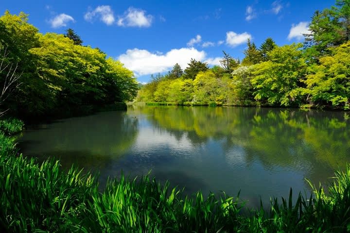 * 구모바 연못(Kumoba Pond) 조용한 구모바 연못. 이 아름다운 연못은 거울처럼 주변의 나무와 하늘을 비추는데, 특히 가을에는 형형색색의 단풍이 연못에 비쳐 놀라운 광경을 연출합니다.