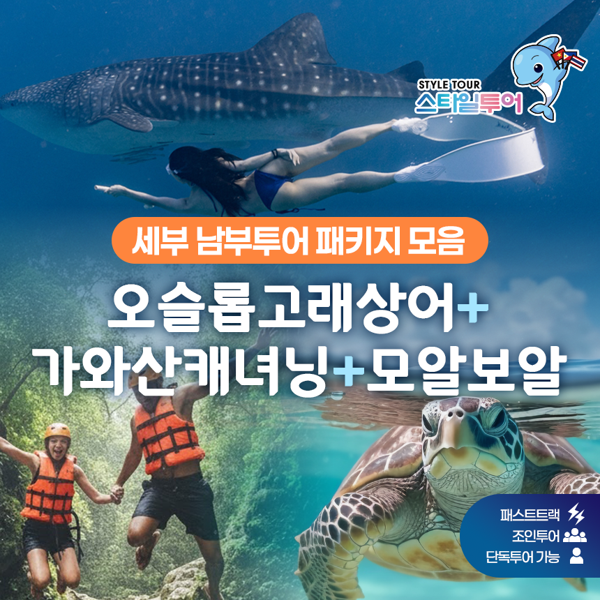 [스타일투어]세부 오슬롭 고래상어 패스트트랙 가와산 캐녀닝 모알보알 올인원 원데이투어 모음