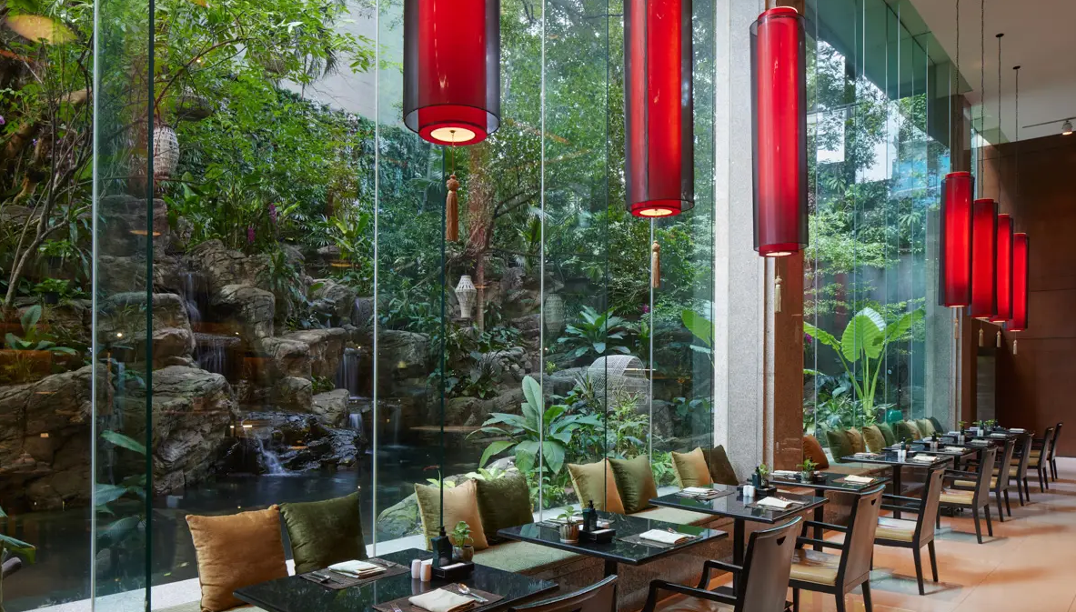 “열대 정원을 마주한 공간에서”라는 콘셉트로, 가든뷰가 있는 편안하면서도 고급스러운 분위기를 자랑합니다.