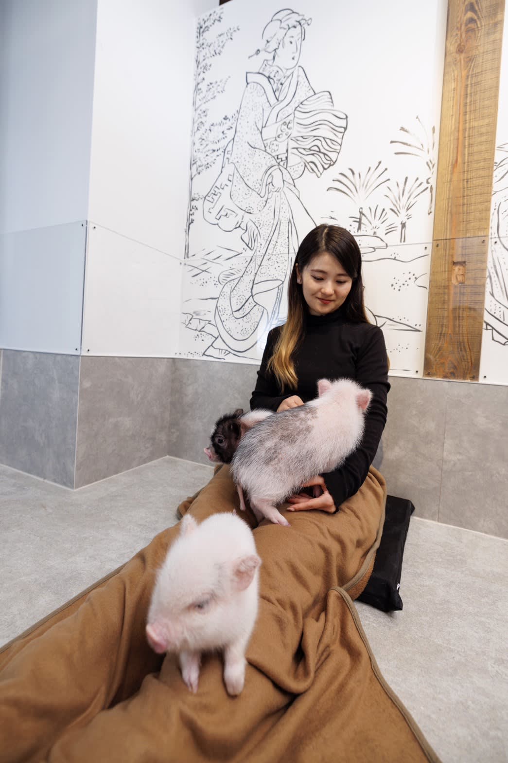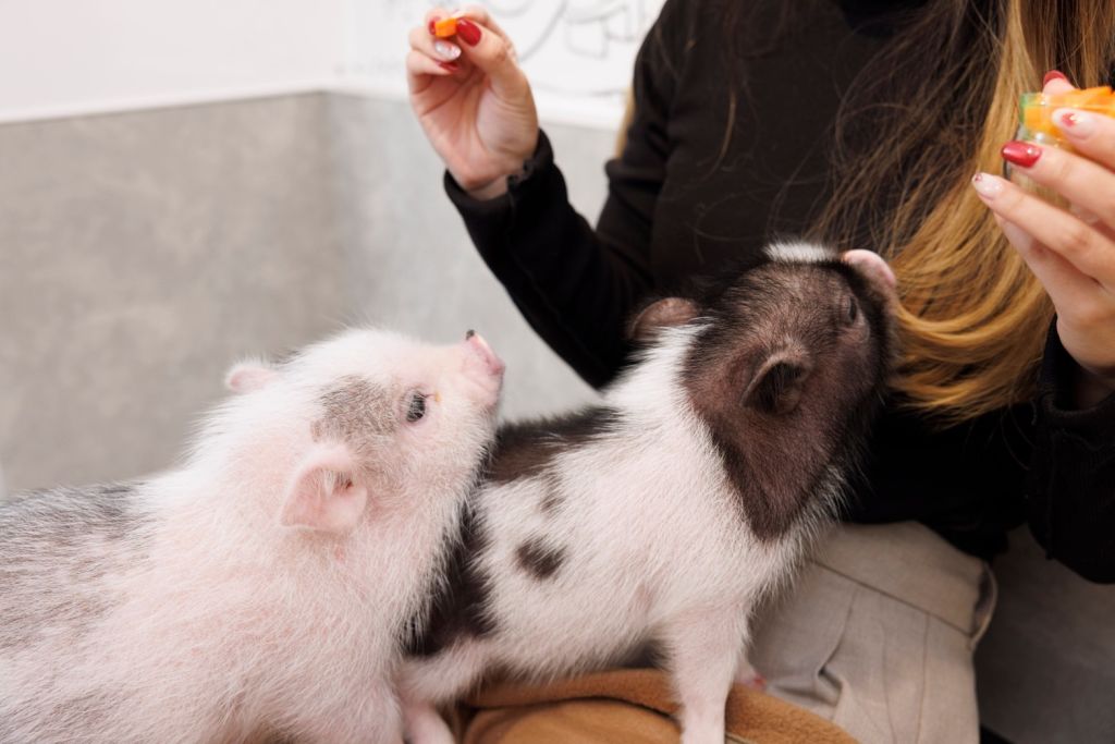 사람을 잘 따르는 작은 돼지들과 함께 즐거운 시간을 보낼 수 있는 완전 개인실 마이크로 돼지 교감 카페입니다. 인기 만점인 간식 주기 체험도 가능합니다! 기념품과 귀여운 스위츠도 놓치지 마세요!