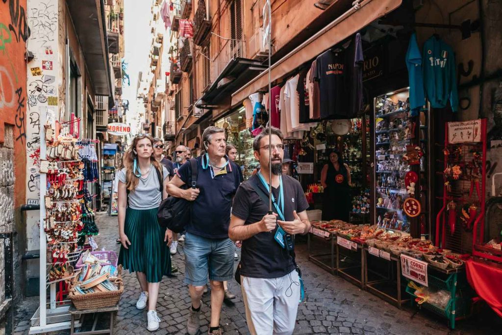 회랑의 평화로운 분위기를 만끽한 후 투어는 활기찬 스파카나폴리 거리를 따라 계속됩니다. 구 나폴리를 가로지르는 이 좁은 길에는 다양한 상점과 레스토랑, 그림 같은 골목이 늘어서 있어 나폴리의 생활과 문화를 엿볼 수 있습니다.