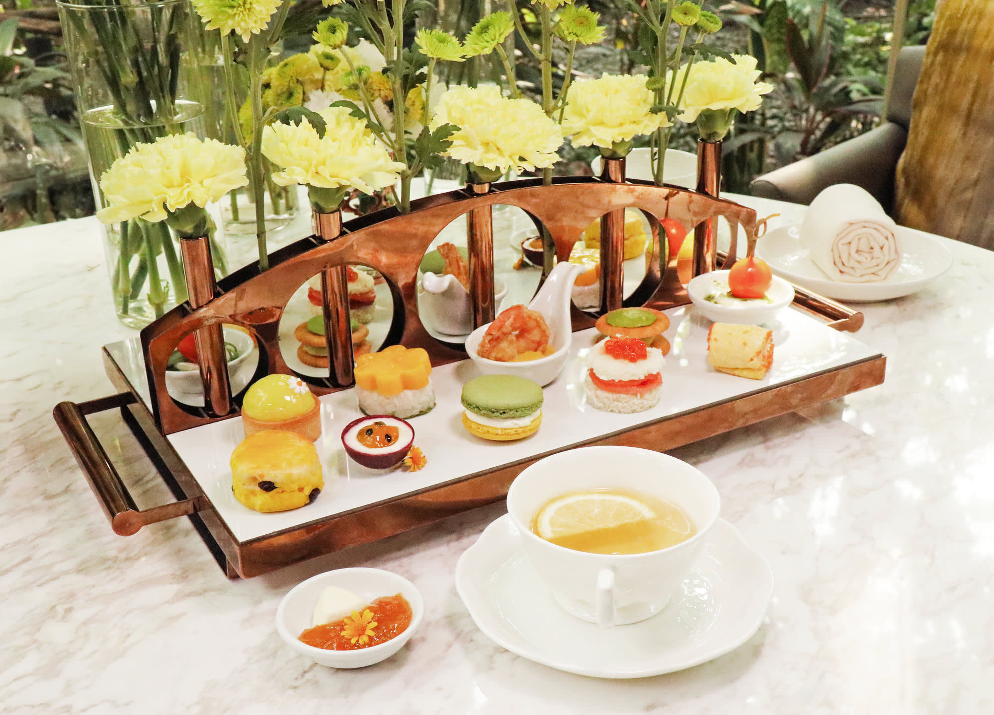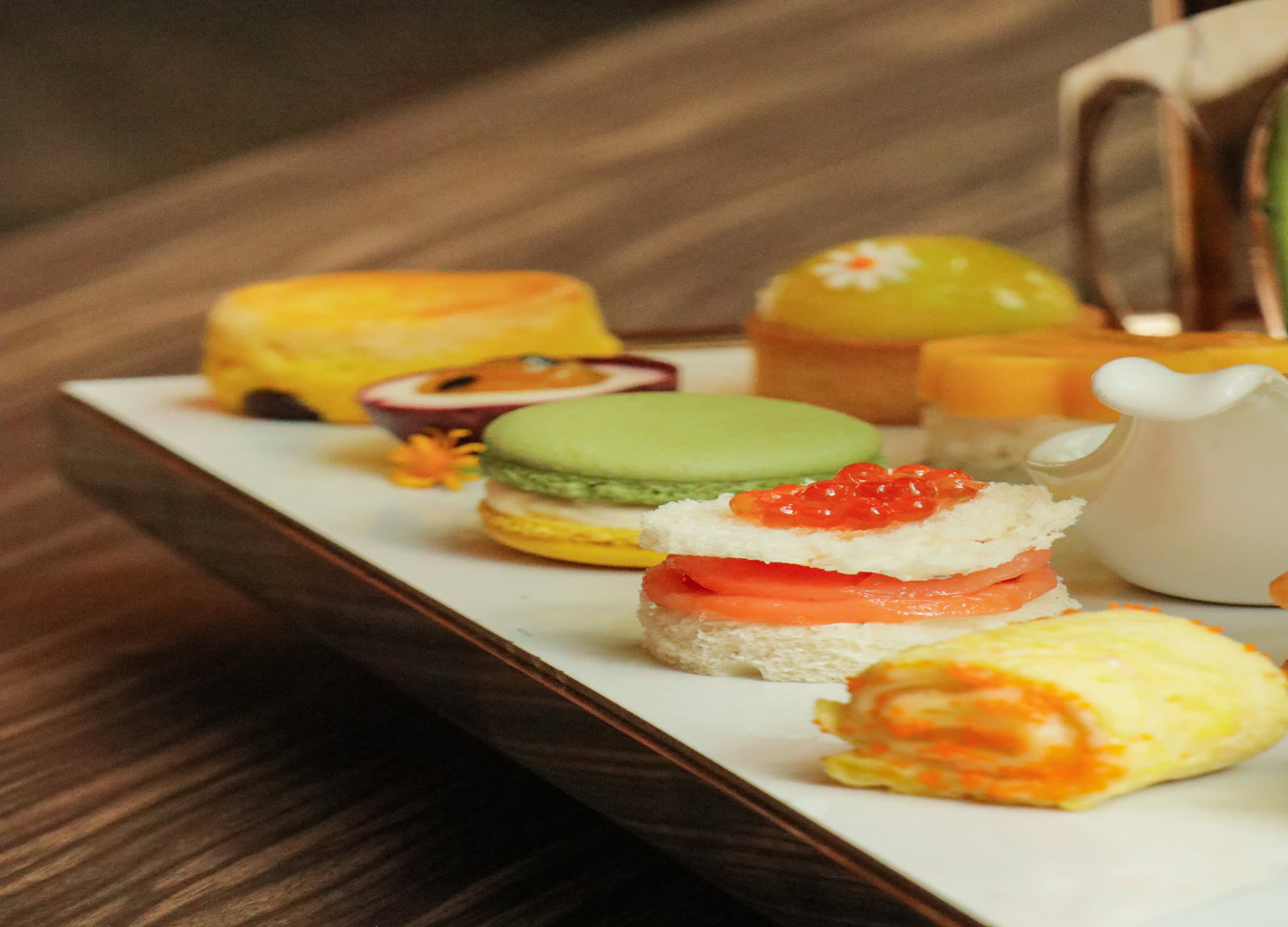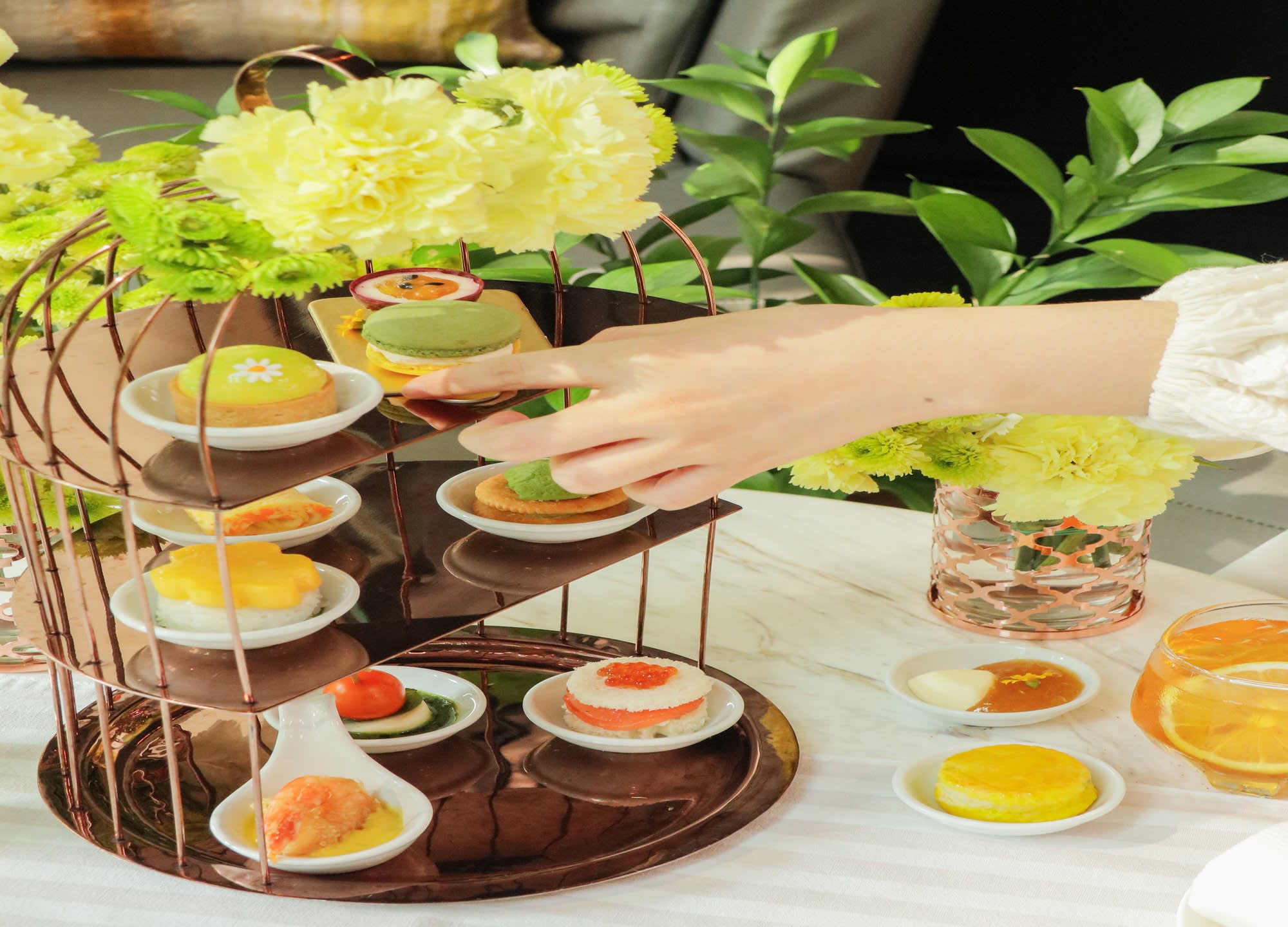 따스한 자연 채광과 여유로운 음악이 어우러진 공간에서, 정성스럽게 준비된 디저트와 세이보리, 향긋한 차 한 잔이 완벽한 오후를 완성합니다.
