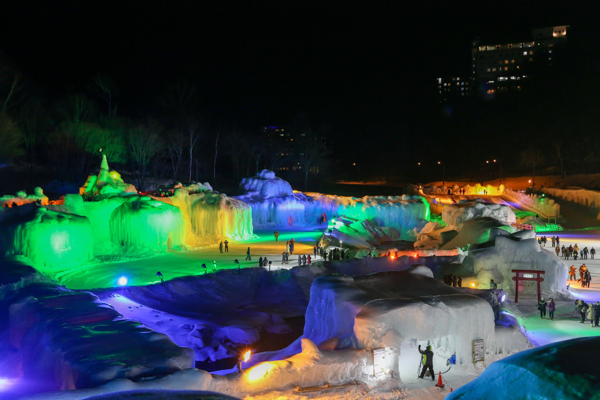 * 소운쿄 빙폭 축제에 참가하여 조명을 받아 빛나는 화려한 얼음 조각과 몽환적인 설경을 감상해 보세요.