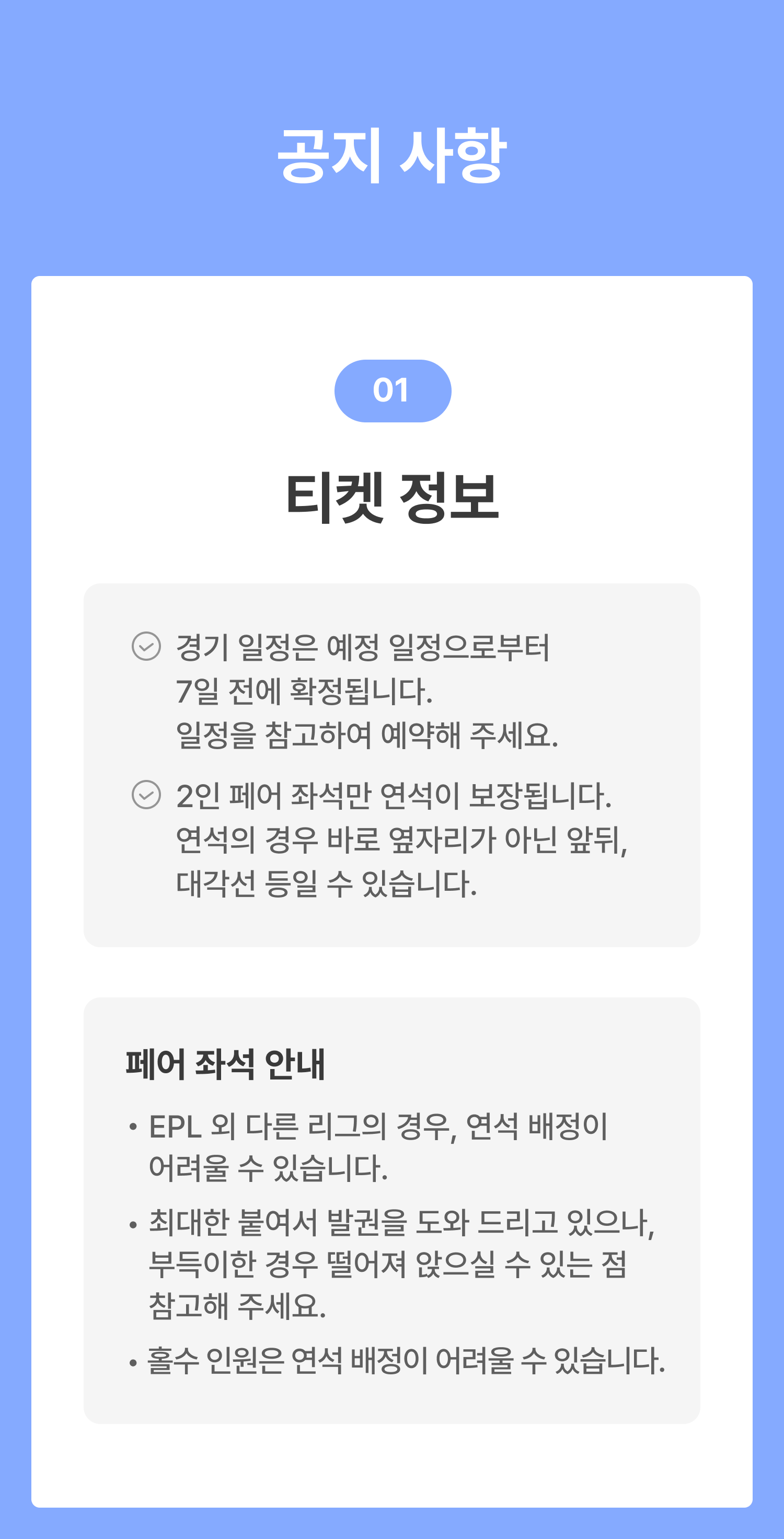경기가 임박할 수록 가격이 오르거나 매진될 수 있으니 서둘러 예약하세요! ⚽