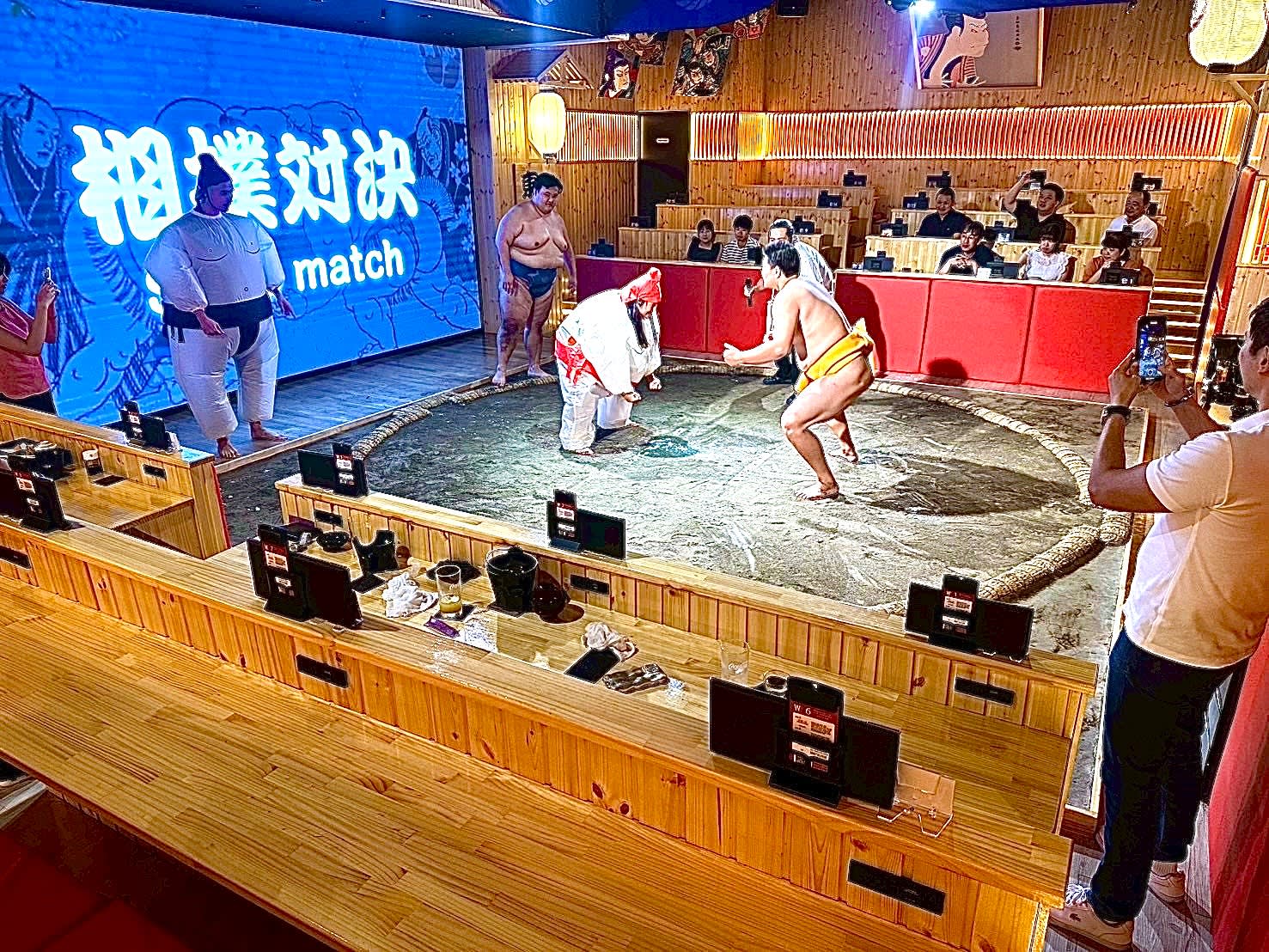 ・어른과 아이 모두 쉽게 즐길 수 있도록 준비된 스모 쇼를 즐겨보세요. ・이중 언어 해설을 통해 스모 경기의 규칙과 의식에 대해 알아보세요. ・전직 스모 선수들이 링 위에서 대결하는 모습을 직접 감상하세요. ・전직 선수들이 준비한 닭고기 전골과 기타 일본 요리를 맛보세요. ・전직 스모 선수와 함께 사진을 찍고 기념품 세트를 받으세요.