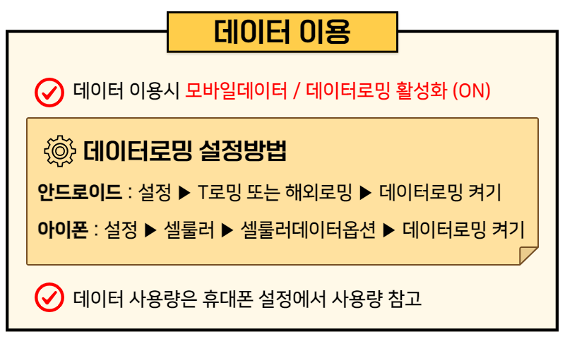 - 해당 상품은 스마트폰 전용 유심으로, 스마트폰을 제외한 기기에서는 이용이 불가합니다.