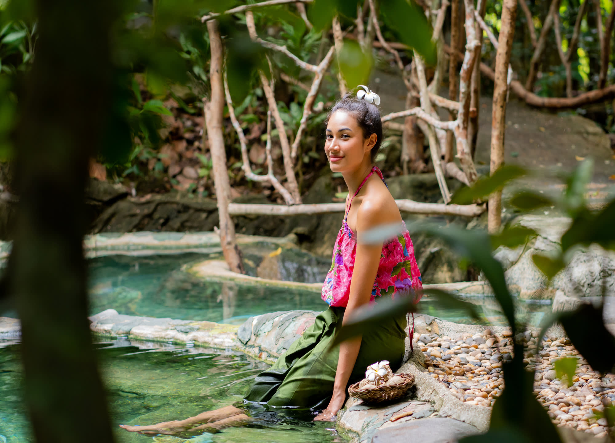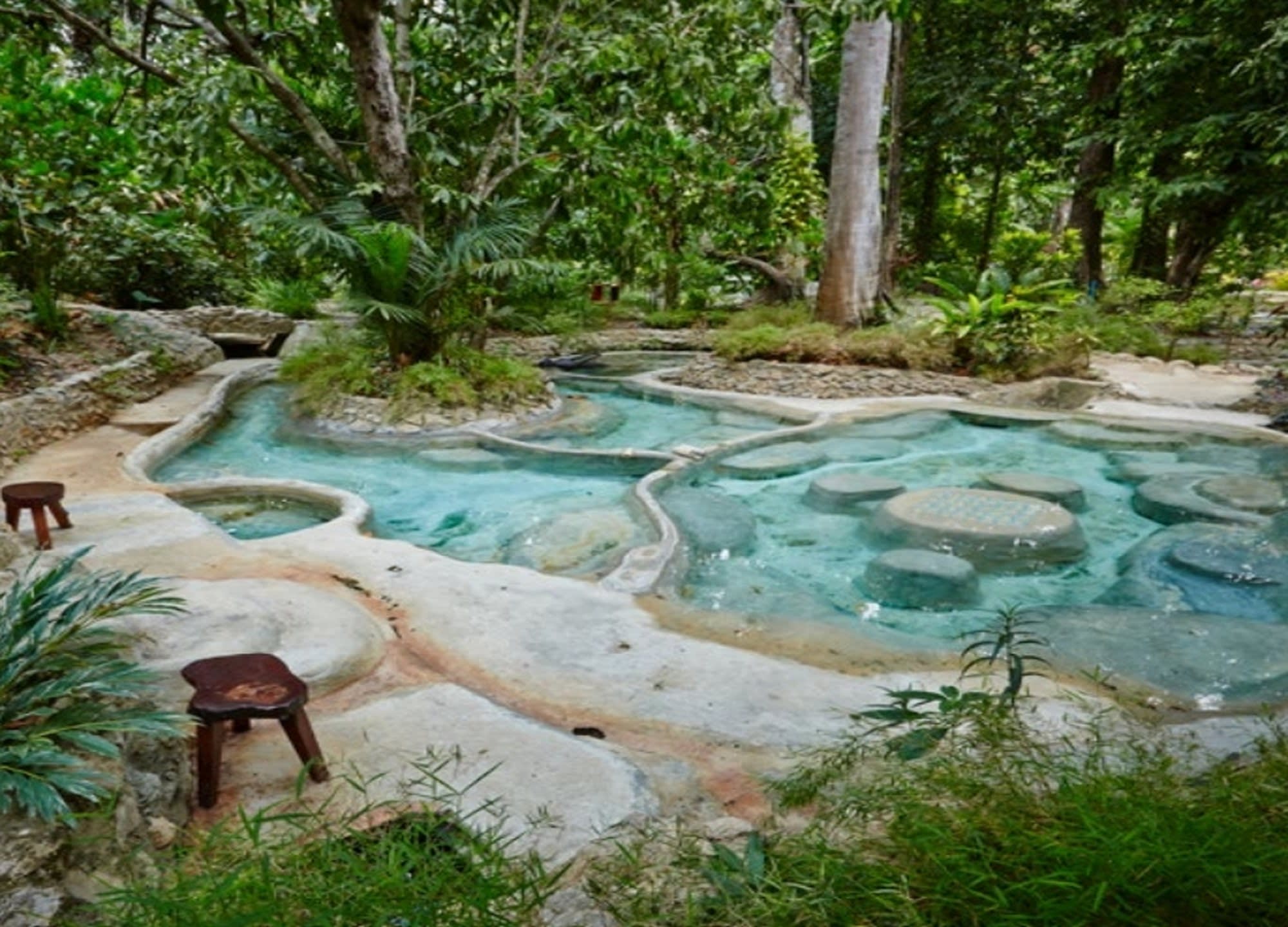 독일의 로미아 연구소(Romeis Institute)로부터 미네랄이 풍부하며 마실 수 있는 물이라는 인증을 받은 약산성 맑은 물에 몸을 담그고 강변의 카바나에서 휴식하며 편안한 마사지를 받으실 수 있어요.