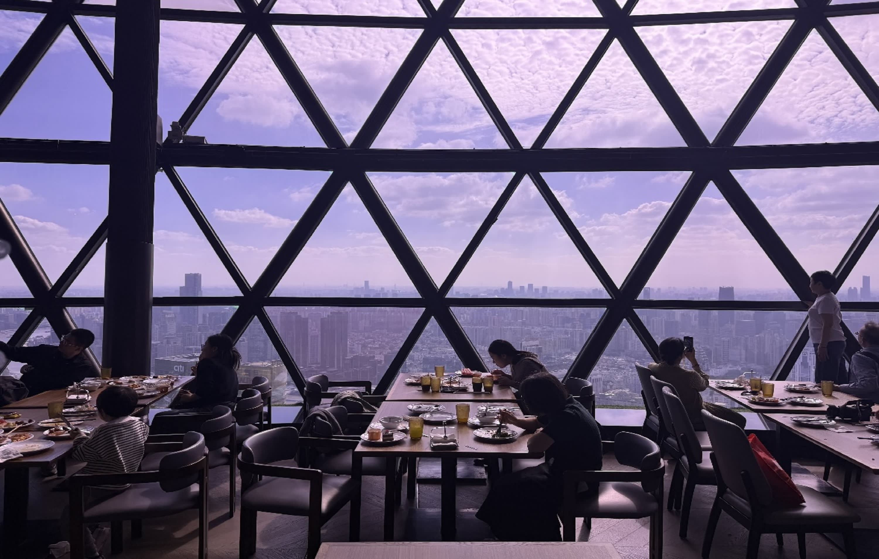 * 회전 레스토랑은 동방명주 타워 267m의 상구체에 위치해 있으며, 아시아에서 두 번째로 높은 회전 레스토랑입니다. 레스토랑은 원형이며, 360° 사각지대 없는 완전 투명 유리 커튼월로, 매 2시간마다 천천히 한 바퀴 회전하며, 다양한 음식을 선택할 수 있도록 하여 새로운 식사 경험을 선사합니다.