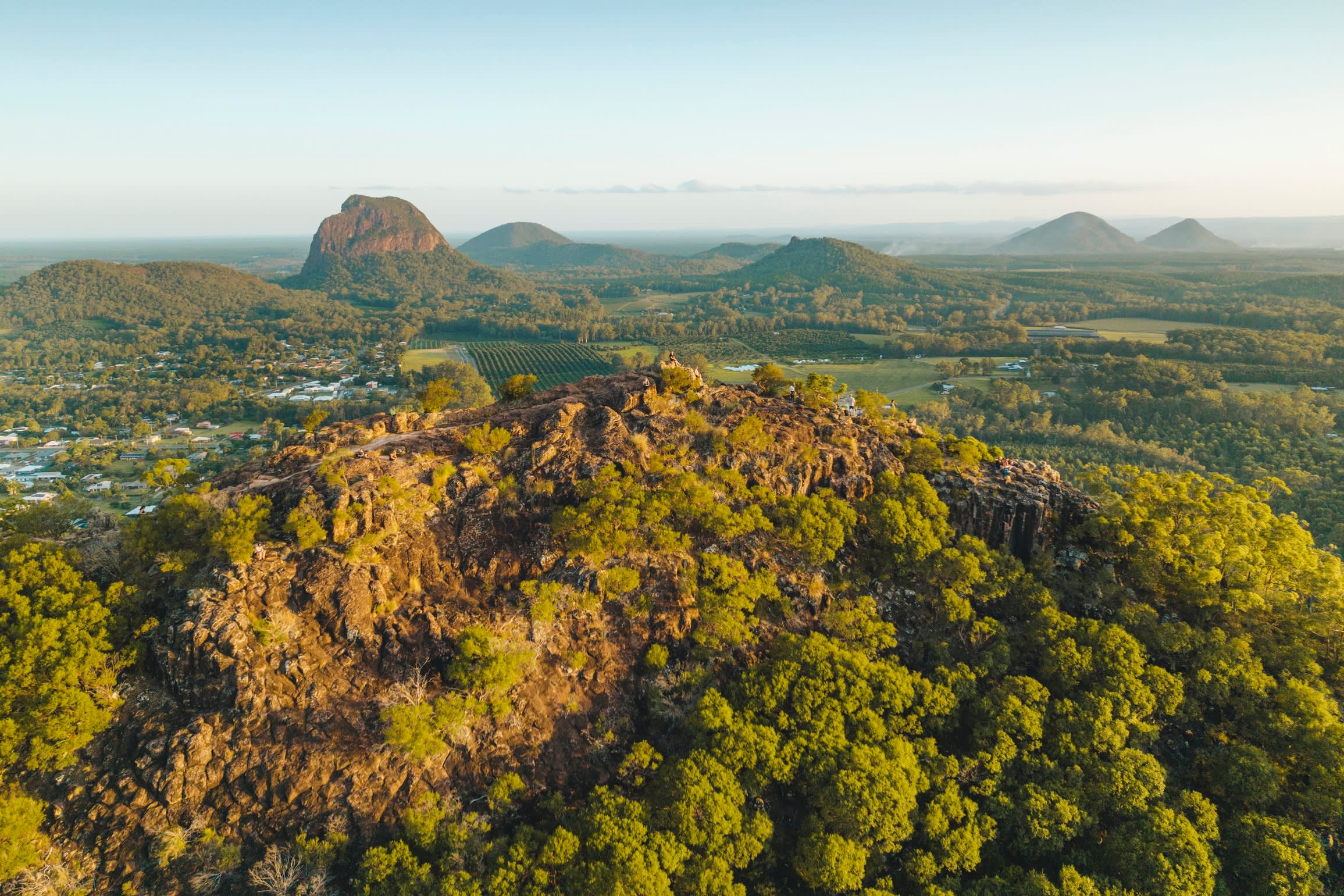 * McCarthy’s Lookout에서 Glass House Mountains의 멋진 파노라마 전망에 감탄하세요