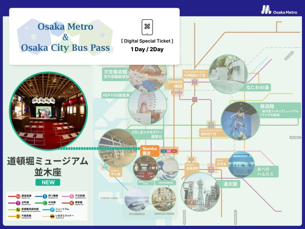2. 오사카 도톤보리 뮤지엄 나미키자+[디지털 기획권] Osaka Metro & Osaka City Bus Pass 2일권