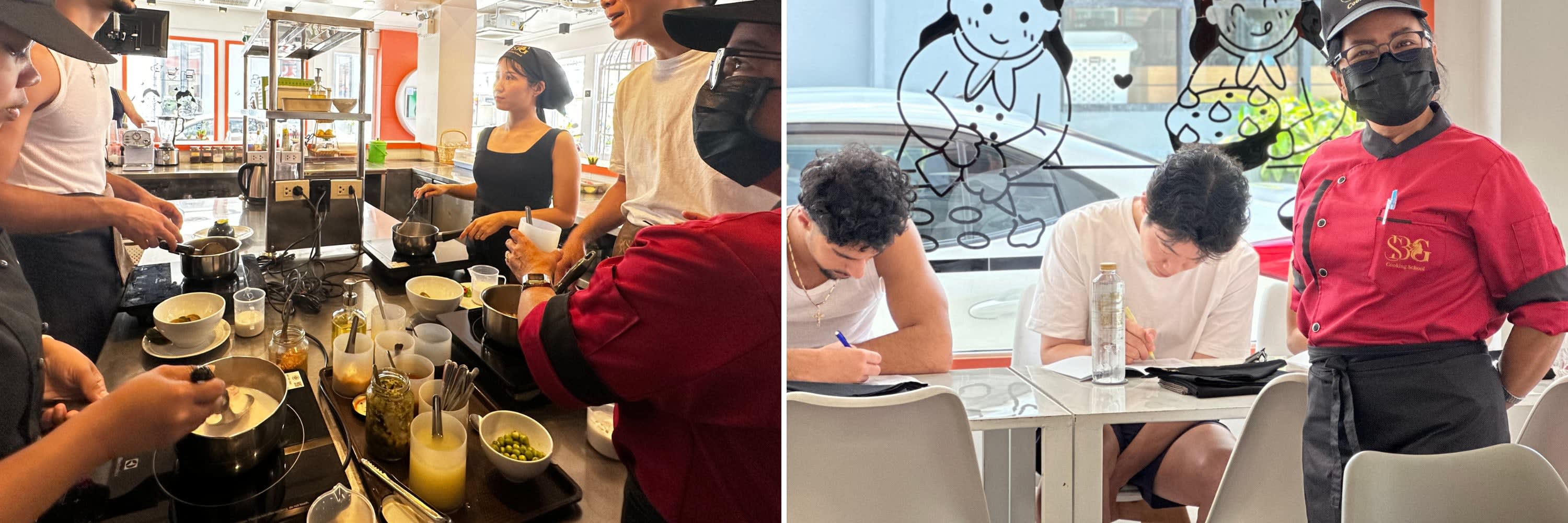 SBG 쿠킹 스쿨 푸켓(빠통)에서는 태국 요리의 진수를 경험할 수 있는 다양한 요리 강좌를 제공합니다. 짧은 시간 동안 간단하게 배우고 싶거나 심도 있는 요리 경험을 원하신다면, 니즈에 맞는 강좌를 선택해 보세요. 2가지 요리를 빠르게 배우는 세션부터 5시간 동안 진행되는 몰입형 요리 어드벤처까지, 팟타이, 그린 커리, 똠얌꿍 등 태국 대표 요리를 만드는 방법을 배울 수 있습니다.