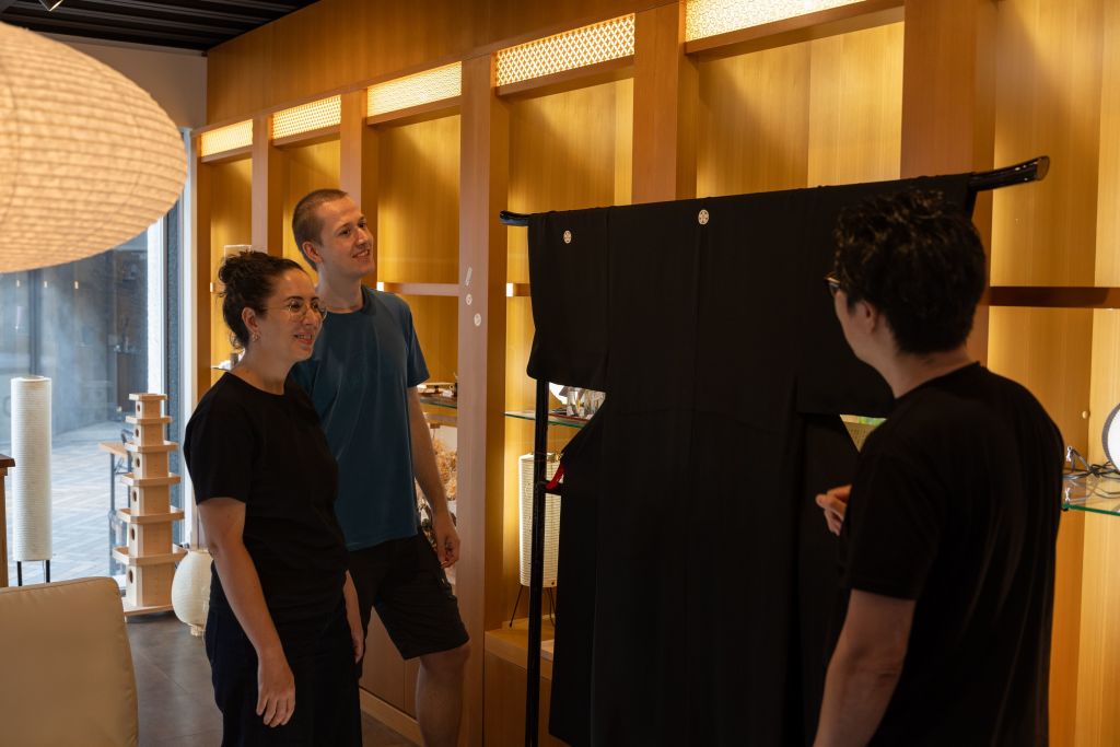 * 나고야의 숙련된 장인에게 구로 몬쓰키 염색 기술을 직접 배워보세요.