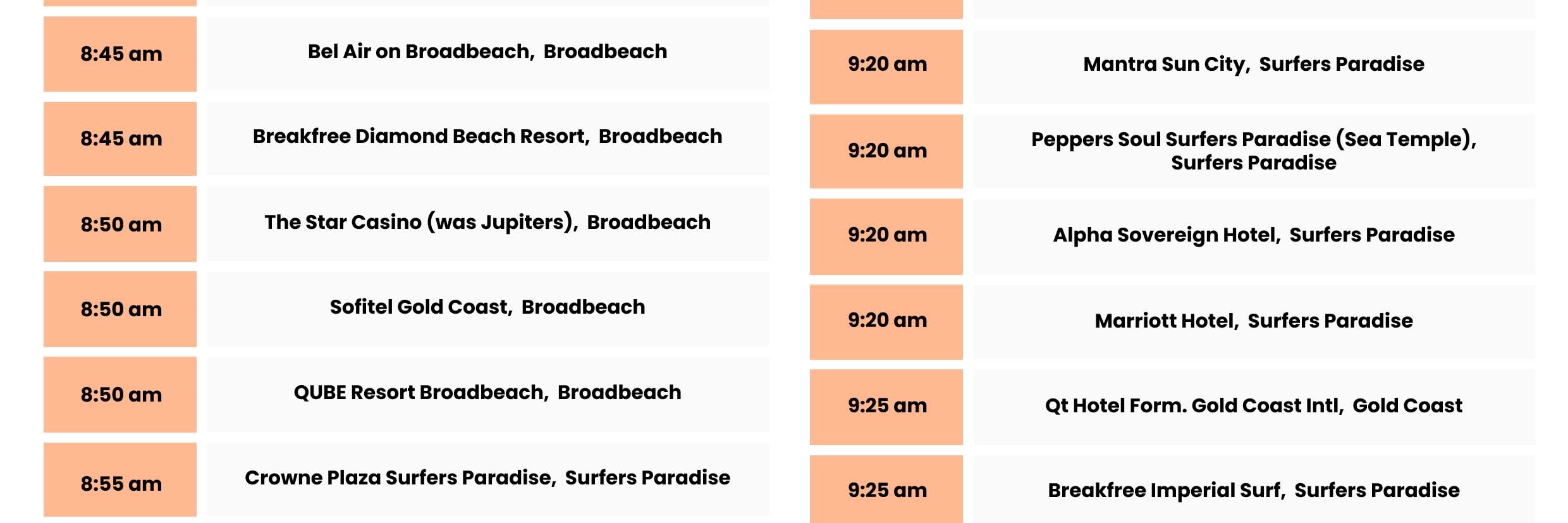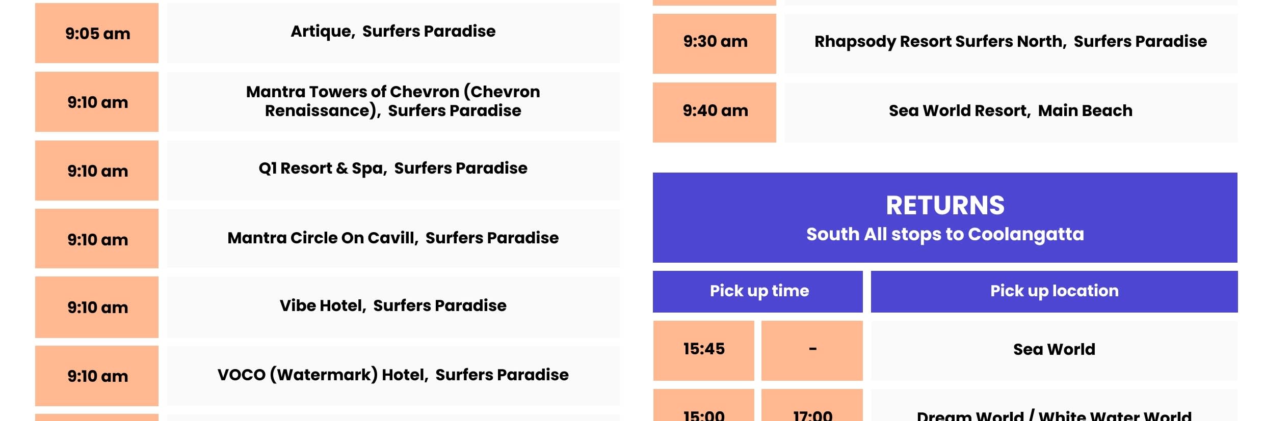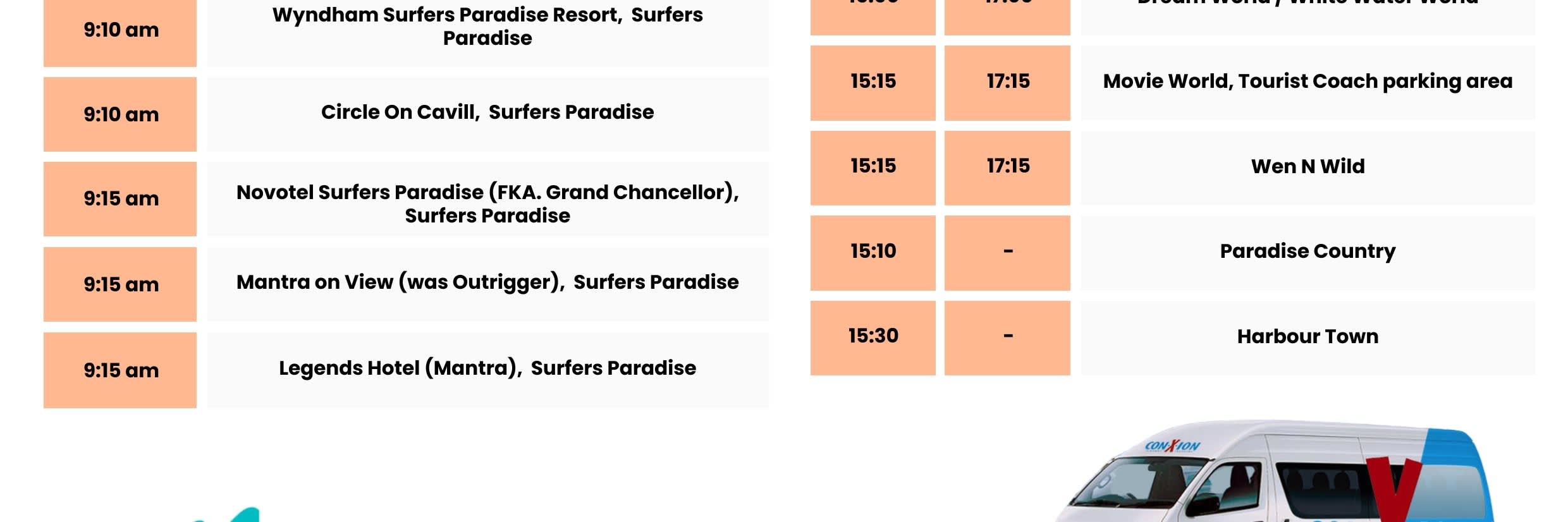 * 골드코스트 테마파크 왕복 이동 서비스를 편안하고 효율적으로 이용하세요.