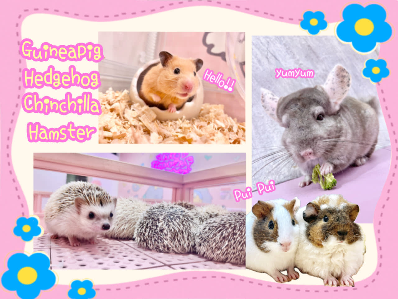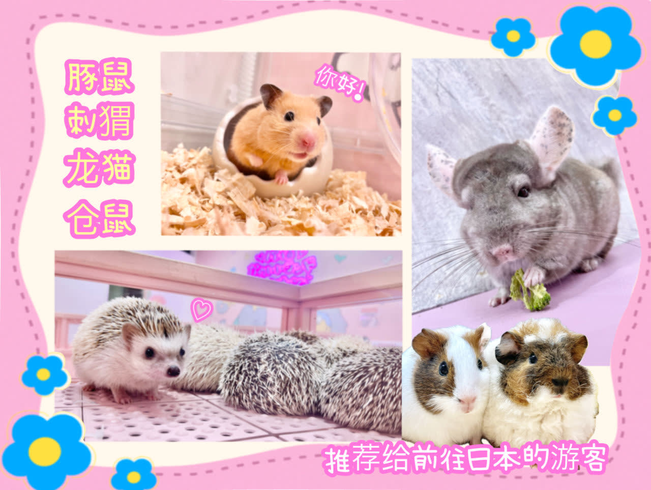 • 하라주쿠 카와이 랜드 큥큥은 도쿄 하라주쿠 중심부에 위치한 매력적인 소동물 카페입니다. 깨끗하고 친근한 공간에서 사랑스러운 기니피그, 고슴도치, 친칠라, 햄스터를 만나보세요. 3세 미만 아동은 무료로 입장할 수 있으며, 시간 제한이 없어 원하는 속도로 편안하게 놀 수 있습니다. 다양한 “KAWAII” 포토 스팟에서 귀여운 사진을 찍고 독점적인 오리지널 상품을 쇼핑하세요. 이 카페는 가족 단위 방문객을 환영하며 영어, 중국어, 한국어를 지원합니다. 현금 없는 결제가 가능합니다. 예약은 필요 없으니, 편하게 방문하여 하라주쿠에서의 즐거운 시간을 만끽하세요!