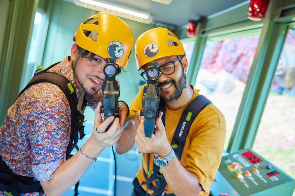 스릴 넘치는 짚라인과 고질라와 맞서 싸우는 슈팅 어트랙션을 즐길 수 있습니다.