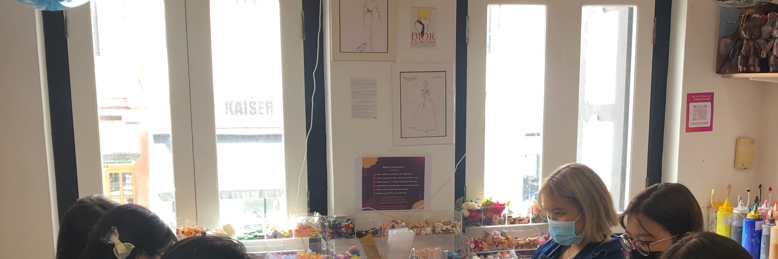 Rêve Handicraft의 아늑한 스튜디오는 800 North Bridge Road에 위치해 있으며(부기스 MRT B번 출구에서 도보 5분 거리), 예술적이고 힙스터 감성이 가득한 아랍 스트리트와 하지 레인에서 아주 가깝습니다.