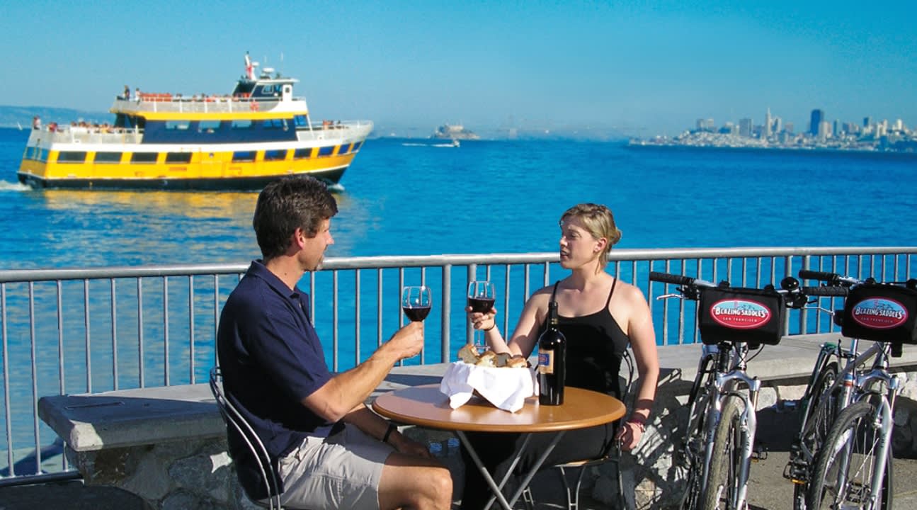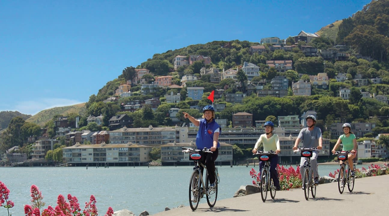 * 만을 가로지르는 신나는 자전거 라이딩 후 매력적인 소살리토를 방문하세요