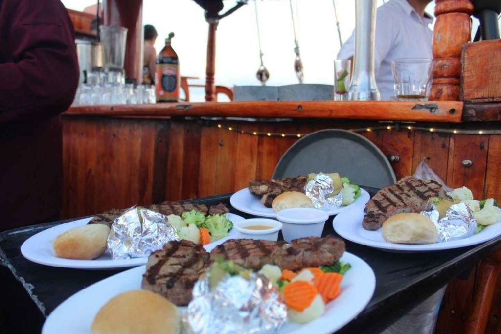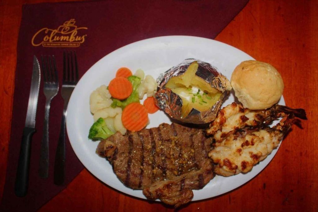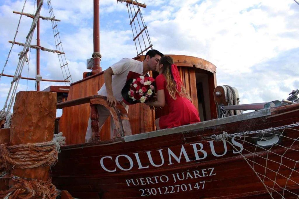 우아한 스페인 갤리온 콜럼버스 호에서 로맨틱한 2시간 30분 디너 크루즈를 즐기며 사랑을 기념하세요. 해가 질 무렵 니추페 라군의 고요한 바다 위를 미끄러지듯 가로지르며 환상적인 빛을 발하는 저녁을 만끽하세요.