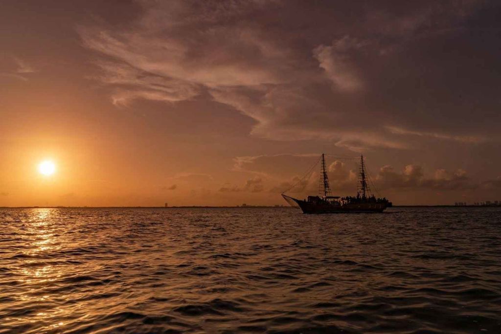 칸쿤: 색소폰 연주와 음료가 있는 갤리온에서의 로맨틱한 저녁 식사