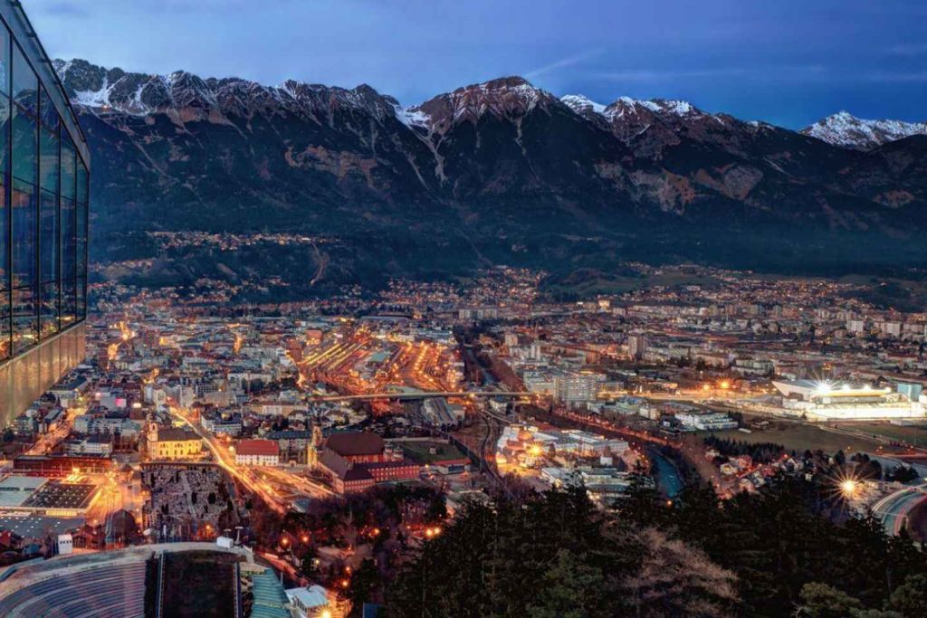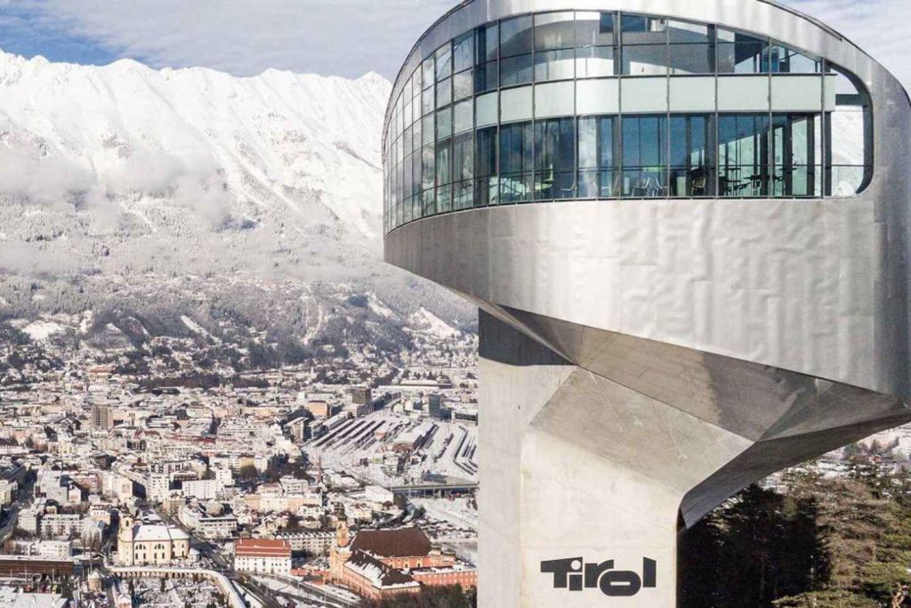 관측 데크에서 인스브루크와 알프스의 파노라마 전망을 감상하세요.