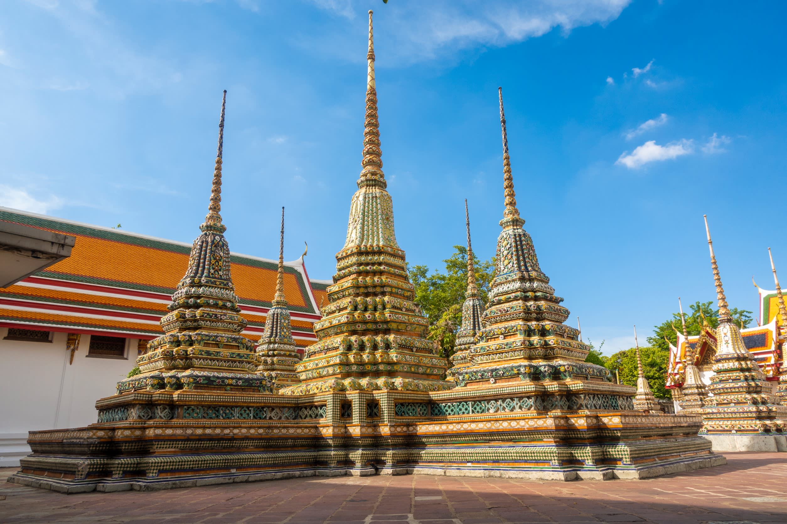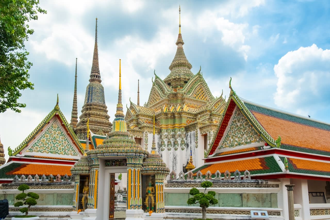 방콕의 왓포와 왓아룬을 방문하여 거대한 와불상과 정교한 태국 건축 양식을 감상해보세요. 왓아룬에서는 특히 해돋이와 해질녘에 숨 막힐 듯 아름다운 경치를 즐길 수 있습니다. 아름답게 장식된 중앙 첨탑에 감탄하고 차오프라야강을 건너는 매력적인 페리도 타보세요. 두 사원 모두 태국 문화에 대한 풍부한 통찰력과 놀라운 시각적 경험을 선사합니다.