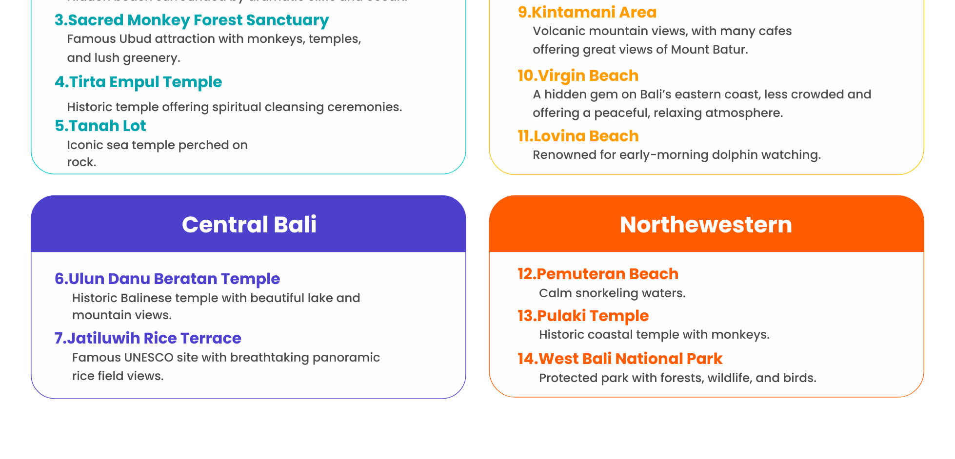 프라이빗 운전기사와 함께 2일 또는 3일간의 맞춤형 여행으로 발리를 원하는 대로 즐겨보세요.