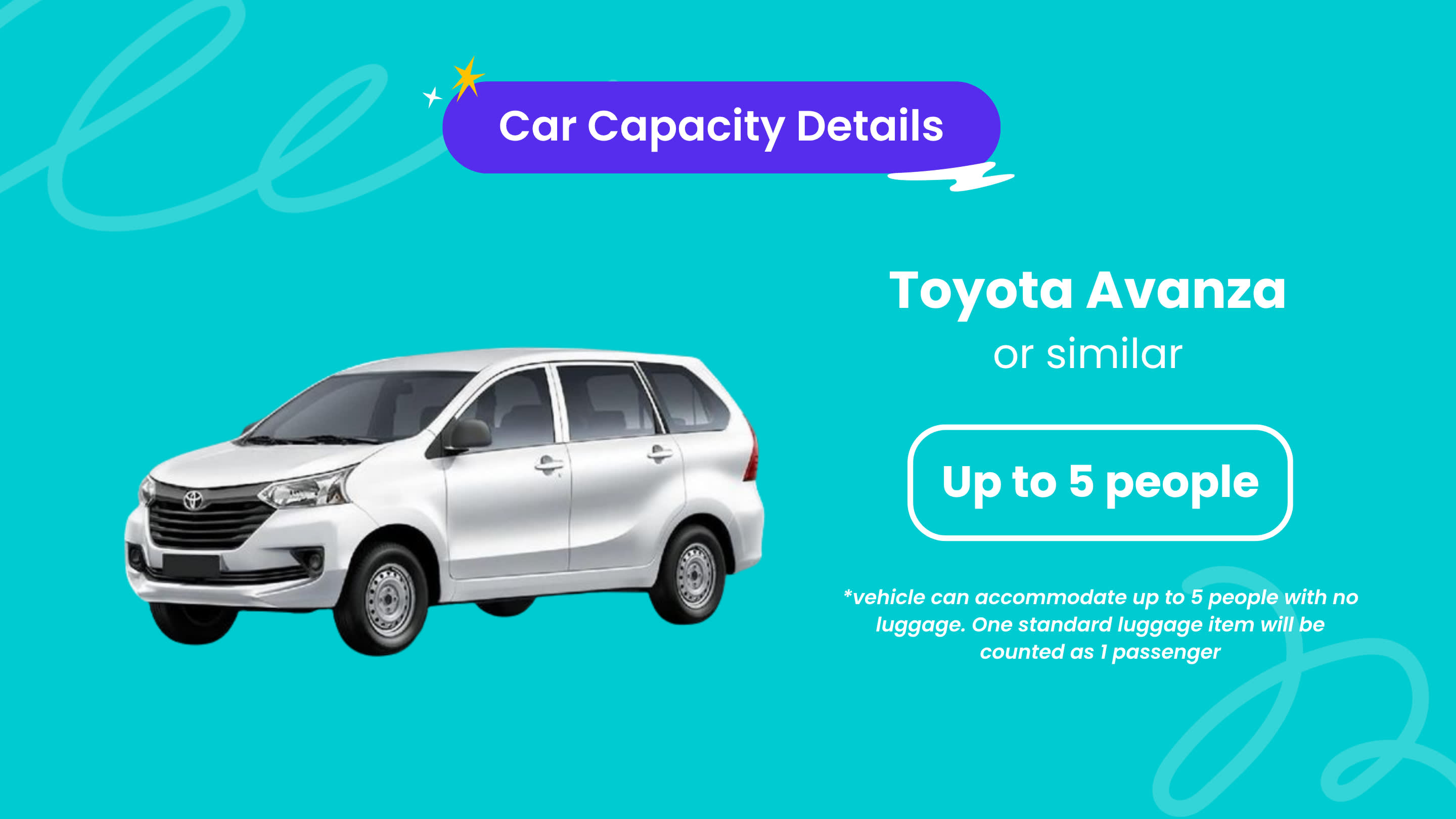 - 예약 조건 및 유의사항 * 공지: 영유아 및 아동도 탑승객 인원수에 포함되어야 합니다. * 예약시 계획하신 일정을 영문으로 기재해주세요. * 예약시 투숙하시는 숙소(ex. 호텔 또는 빌라)의 영문 주소와 영문명을 정확하게 기재해주세요 부정확한 정보로 인해 픽업이 지연되거나 진행되지 못한 경우 환불은 불가합니다.