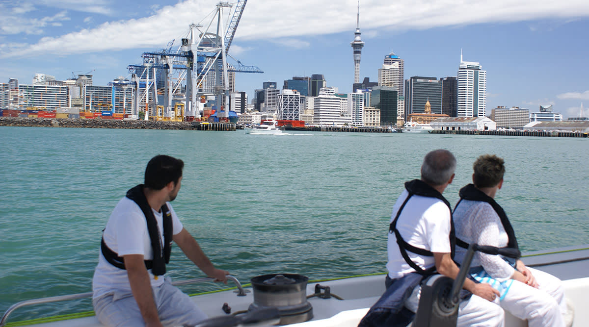 2시간 동안 오클랜드의 Waitematā Harbour에서 실제 America's Cup Yacht를 타고 항해하는 저희 크루에 합류하세요.