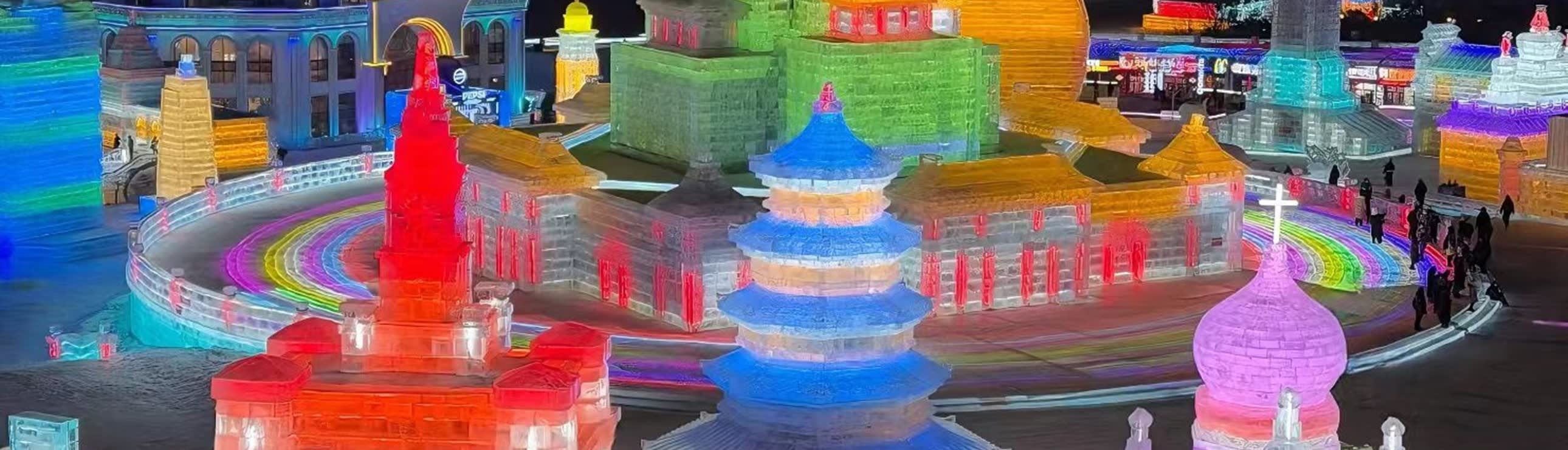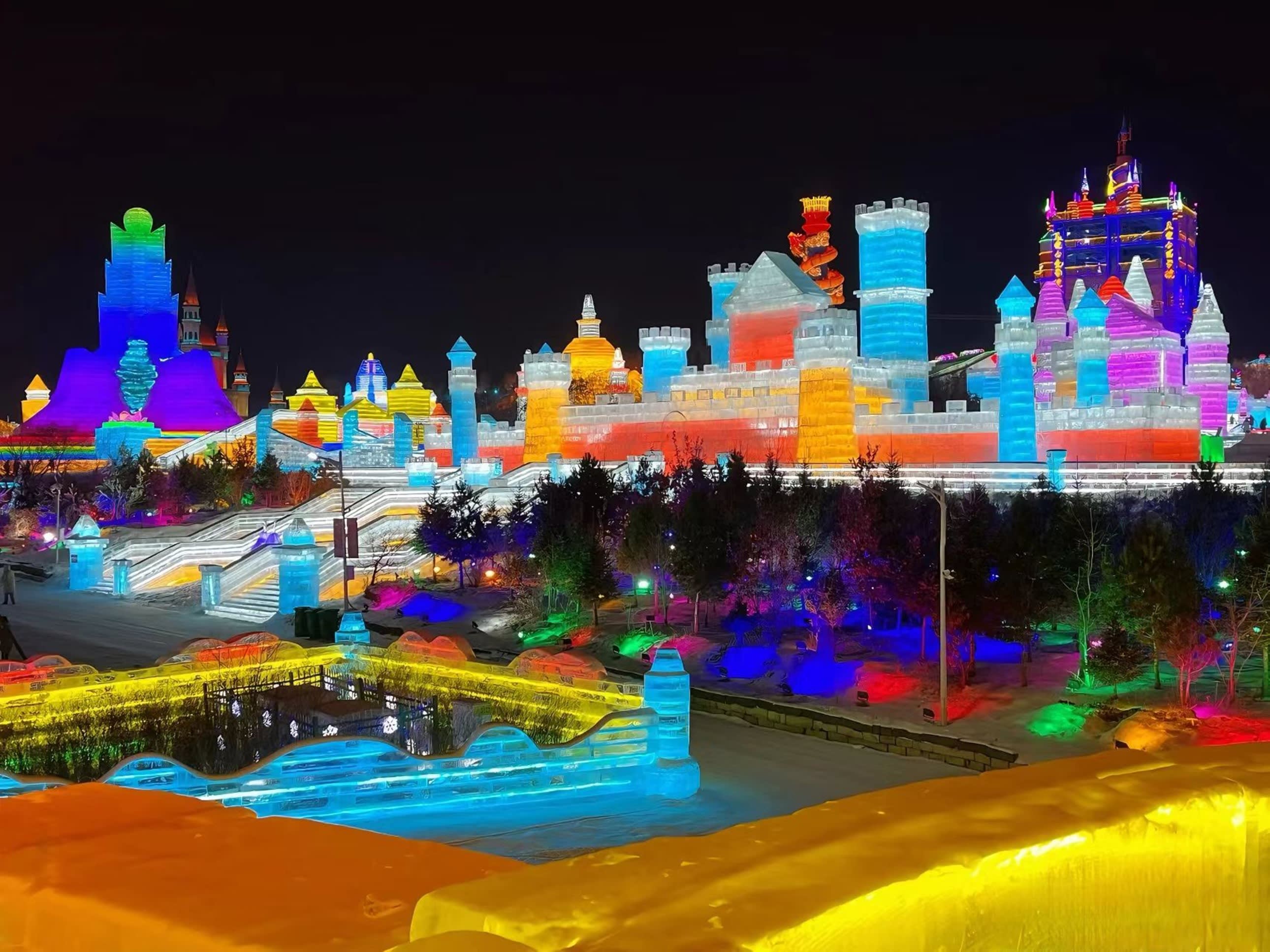 * 시각적으로 압도적인 빙설 예술: 수천 개의 얼음 조각과 눈 조각이 60만 평방미터를 덮고 있으며, 성에서부터 무형 문화재 조형물에 이르기까지 낮에는 수정처럼 맑고 밤에는 수만 개의 색색 조명으로 밝혀져 몰입형 빙설 미학의 향연을 선사합니다.