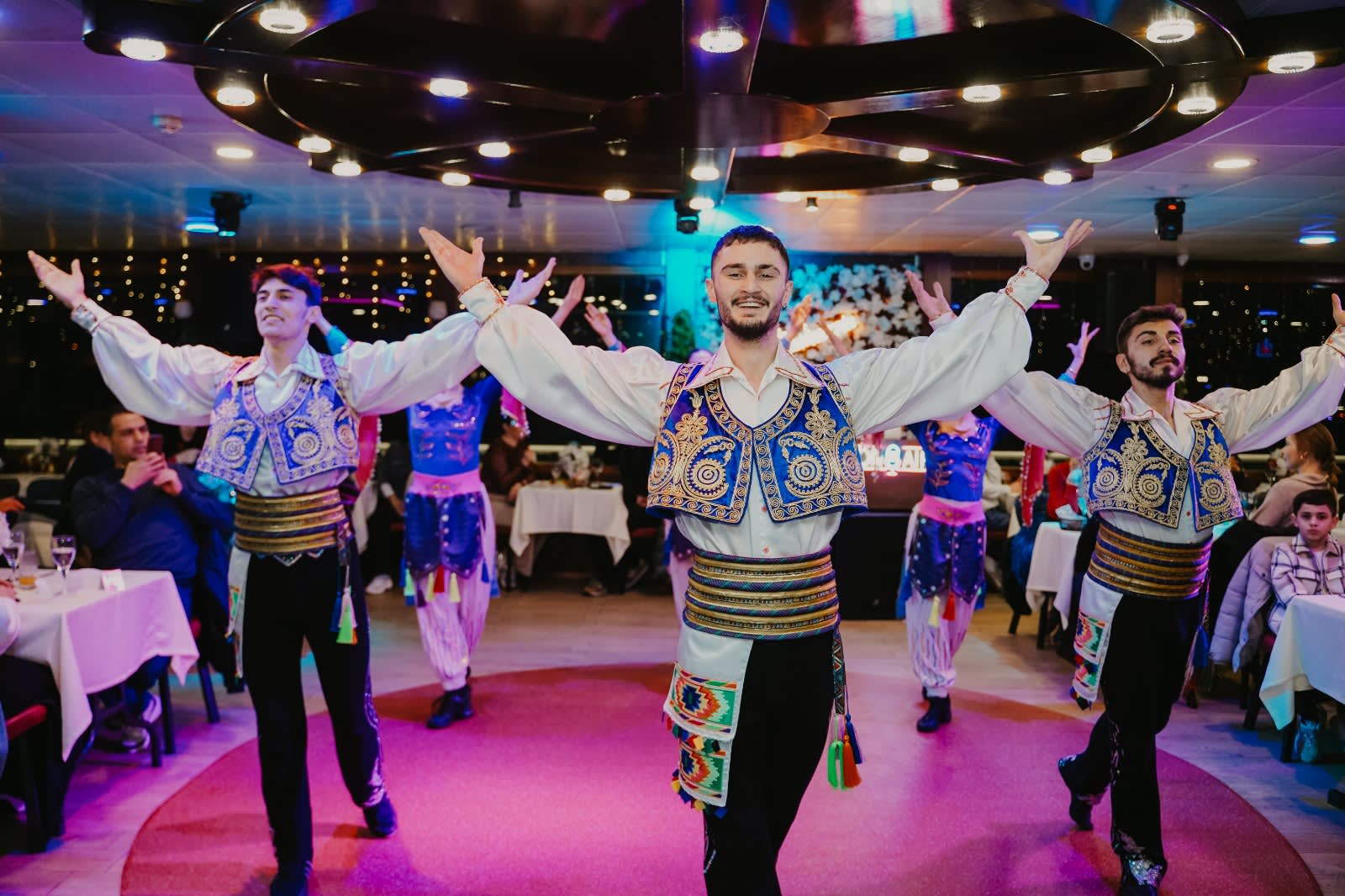 유럽과 아시아가 만나는 보스포러스 해협을 반짝이는 이스탄불 스카이라인 아래에서 항해하세요 진정한 터키 요리와 세계 각국의 요리를 선보이는 맛있는 멀티코스 저녁 식사를 즐기세요 오픈 데크나 아늑한 실내 좌석에서 휴식을 취하며 무제한 음료를 즐기세요 터키 민속 춤부터 밸리댄스, DJ 음악까지 라이브 공연에 매료되세요 보스포러스 다리, 오르타코이 모스크, 루멜리 요새와 같은 상징적인 랜드마크를 지나가세요 사랑하는 사람과 잊지 못할 추억을 만들거나 혼자 고요한 휴식을 즐기기에 완벽합니다
