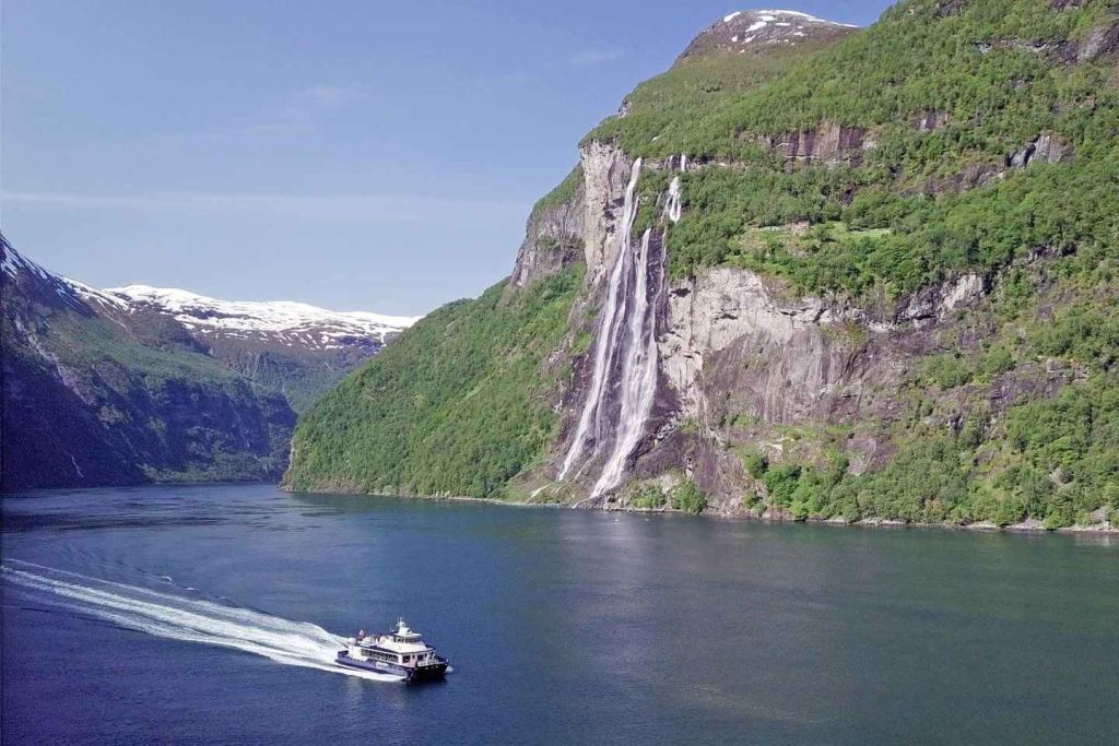 게이랑에르 피오르드의 깊고 푸른 바다를 따라 영혼의 여행을 떠나보세요.