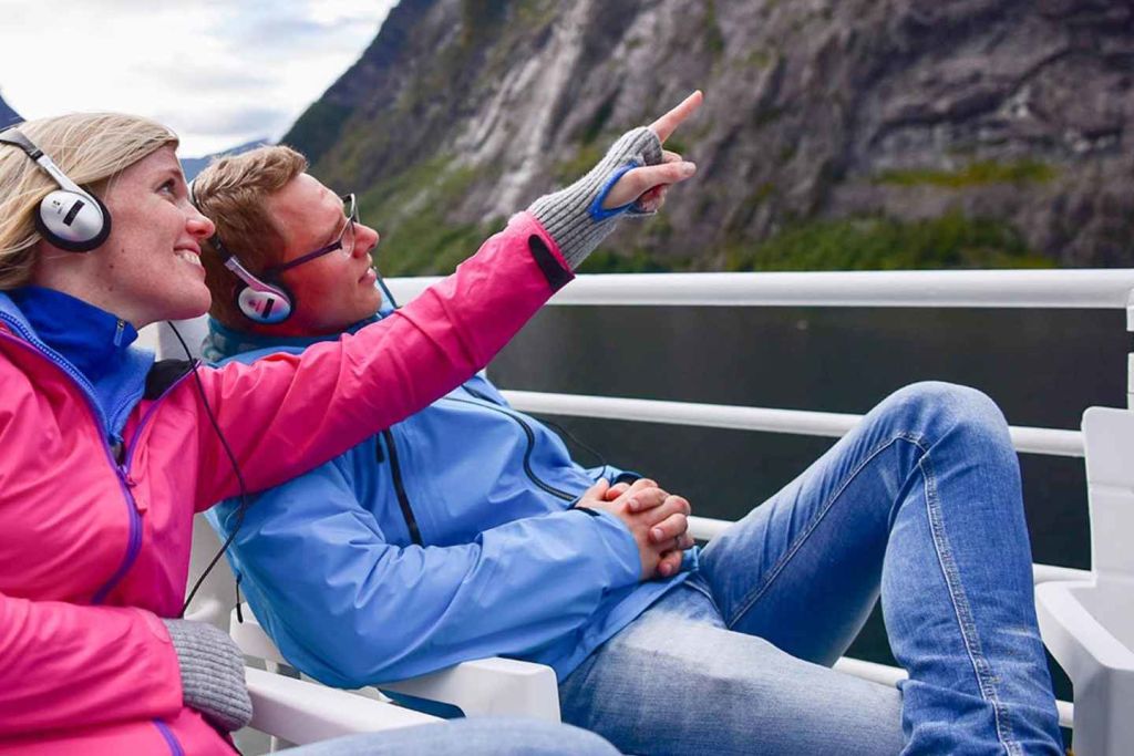 개인 기기에 다운로드하여 재생할 수 있는 오디오 가이드를 통해 현지 이야기에 빠져들고 흥미로운 정보를 찾아보세요. 피오르드에 서식하는 물개와 바닷새 같은 야생동물도 눈여겨보세요.