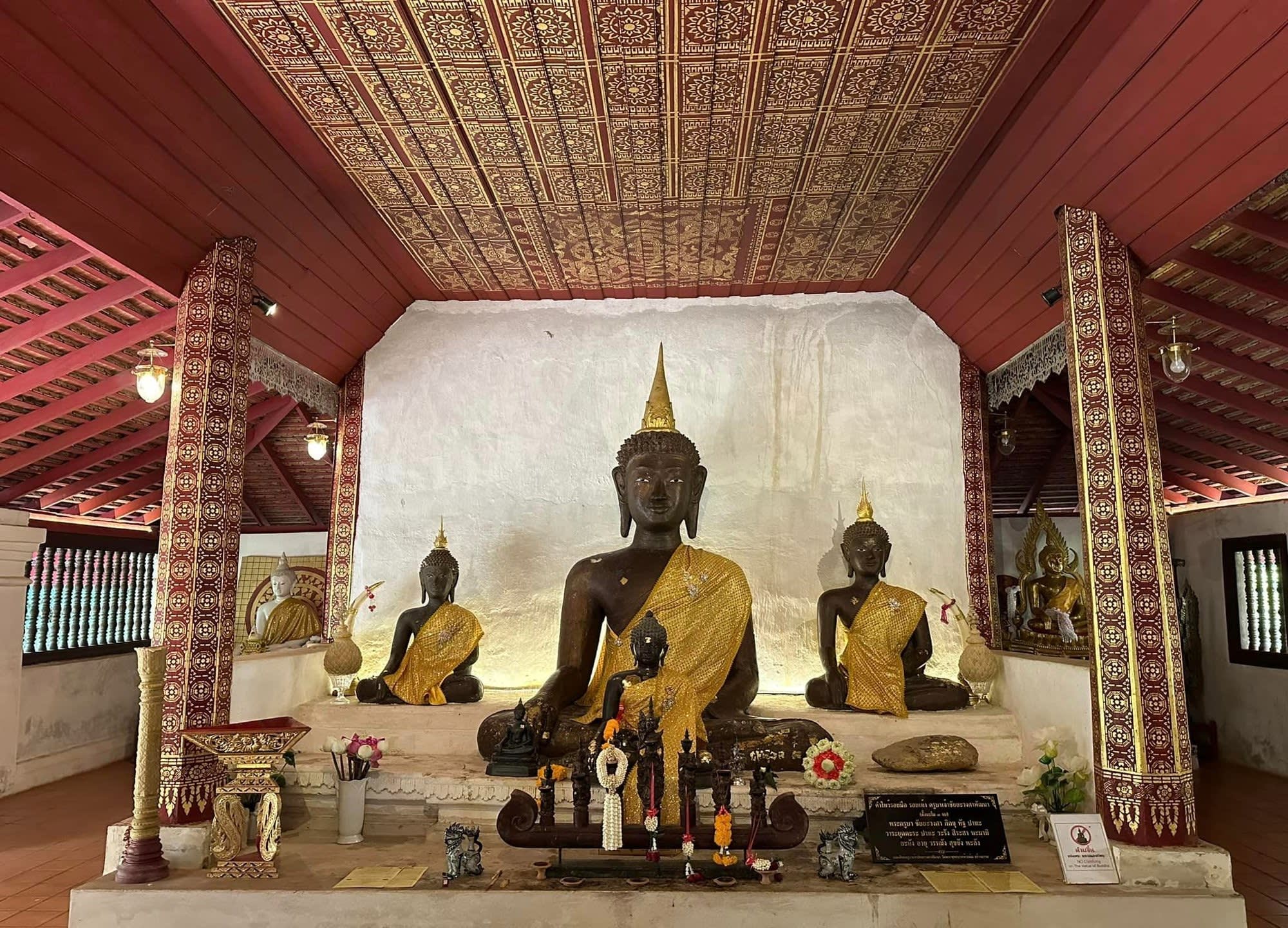 사원 내에 들어가면 황금으로 도금 된 눈이 부신 거대한 황금 탑과 크고 작은 불상들, 옥으로 된 불상, 누워있는 와불 등 많은 불상들을 볼 수 있어요.
