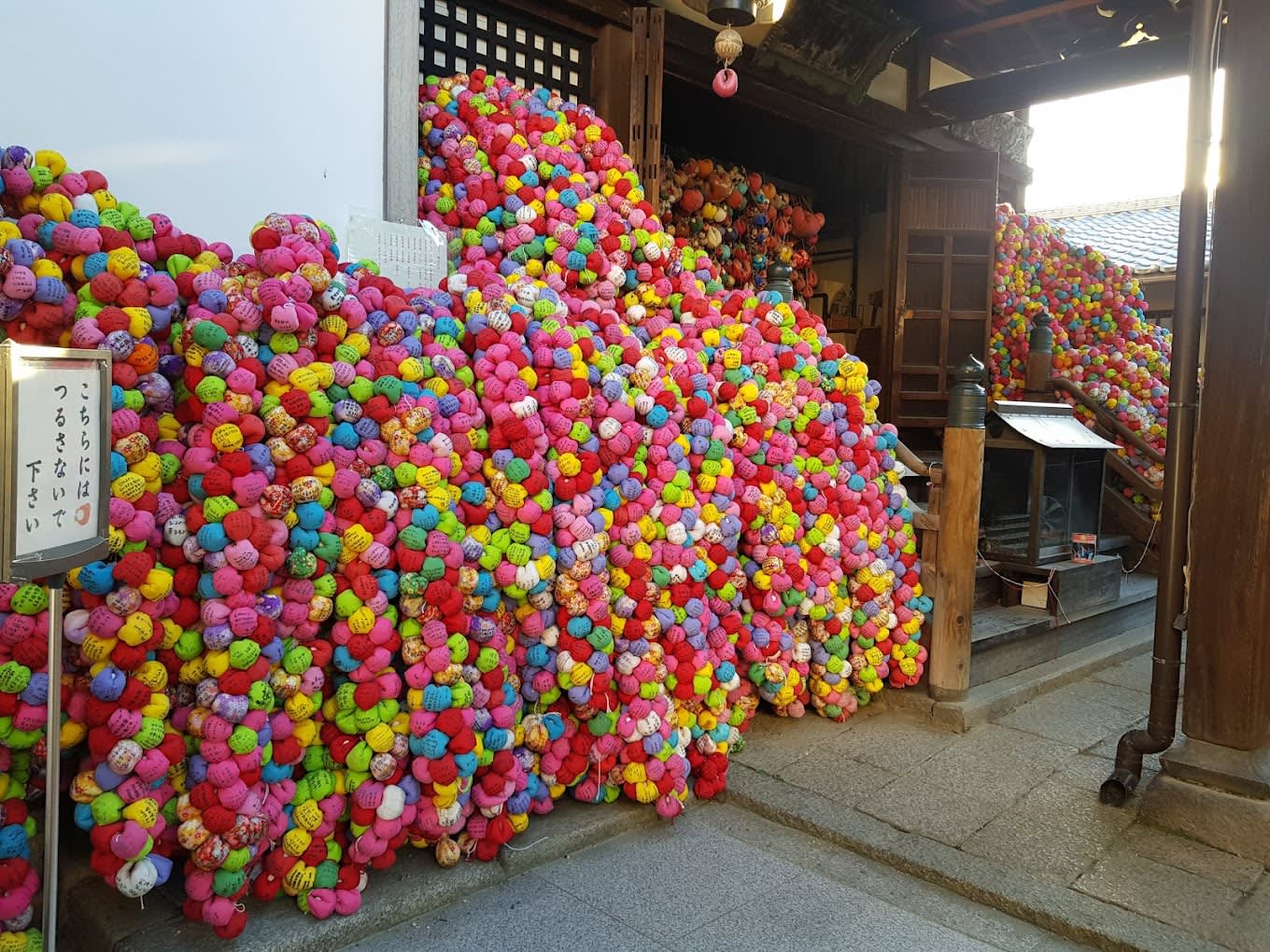 그런 다음 새로운 인기 사진 명소인 야사카 코신당으로 이동합니다. 이곳은 독특한 다채로운 공 장식과 강렬한 신앙 분위기로 빠르게 인기를 얻었습니다. 🌈 많은 관광객들이 참배하고 축복을 빌기 위해 이곳을 방문할 뿐만 아니라 다채로운 공과 함께 사진을 남겨 교토의 아름다움과 축복을 더 많은 사람들과 공유합니다. 📸🙏