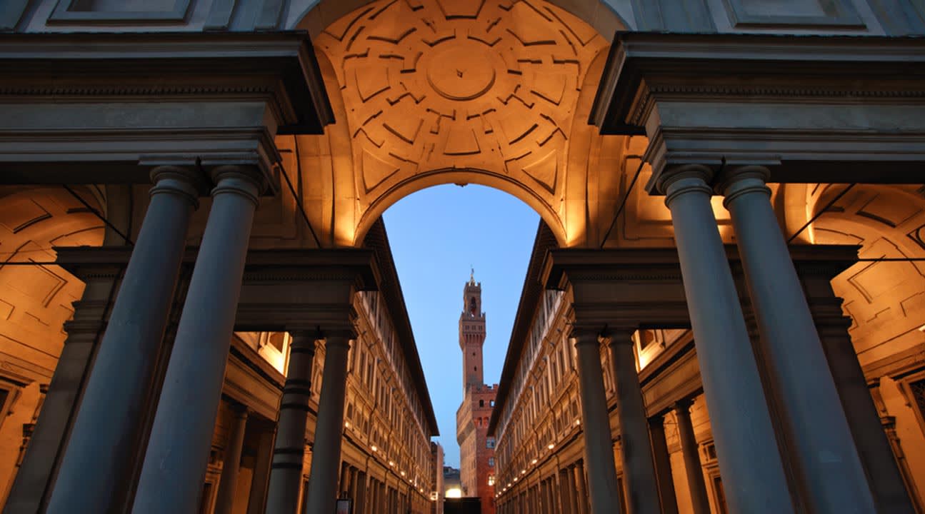 우피치 미술관의 거대한 방과 밝은 복도 사이에서 박물관의 탁 트인 창밖으로 피렌체의 숨 막힐 듯한 경치를 감상할 시간도 주어집니다.
