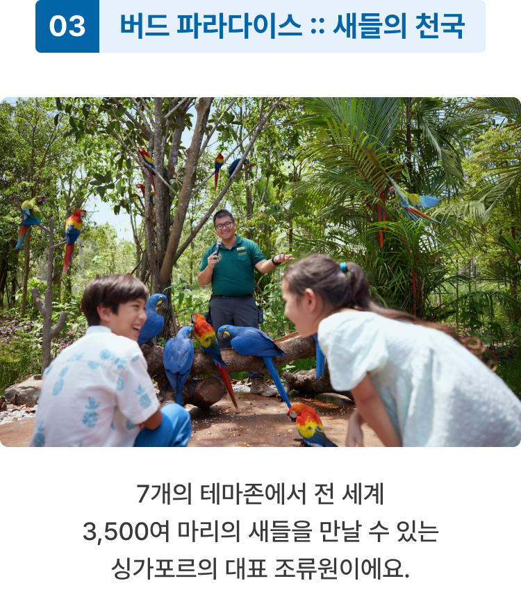 만다이 야생동물 보호구역의 핵심 파크 3곳을 빠짐없이 탐험하며 잊지 못할 싱가포르 추억을 만드세요.