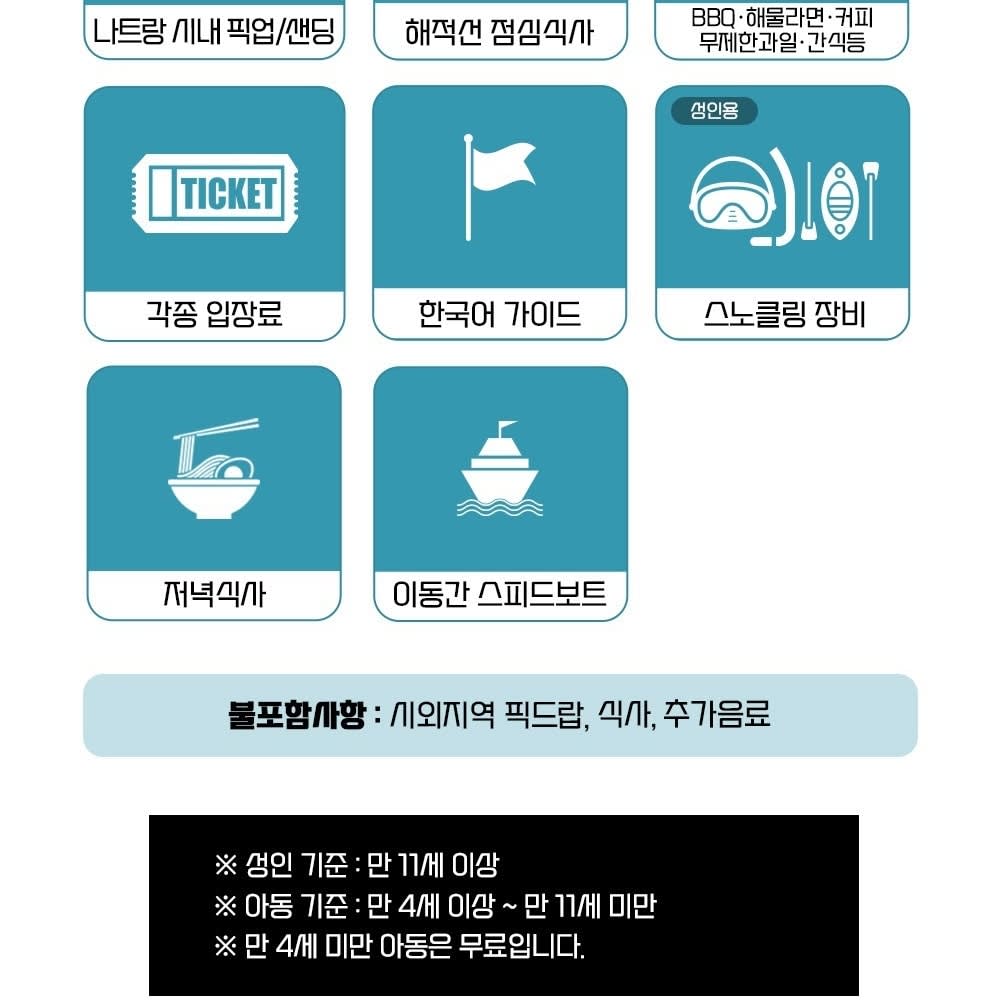 * 해적선 파티: 신나는 선상 파티와 함께 스노클링을 즐기고, BBQ 및 해물 라면이 포함된 푸짐한 점심 식사!