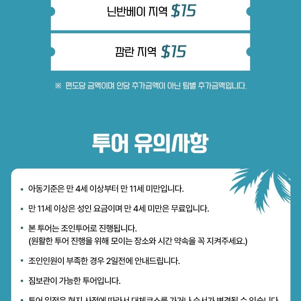 * 숙소 출발 (나트랑 시내 픽업/샌딩 포함)