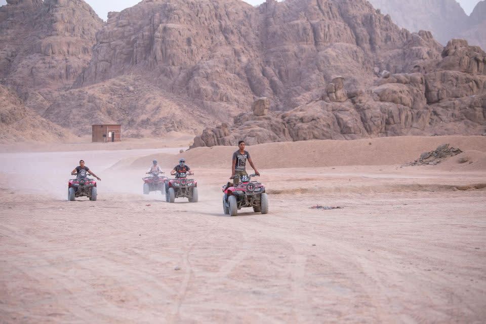 호텔 픽업으로 짜릿한 사막 모험을 시작하세요. 쿼드 바이크를 타고 모래 언덕을 질주하며 베두인 마을로 향합니다. 마을에 도착하면 향긋한 블랙 티를 마시며 베두인족의 문화를 체험하고, 낙타를 타며 여유로운 시간을 보내세요. 다음 여정은 눈부시게 빛나는 홍해입니다!