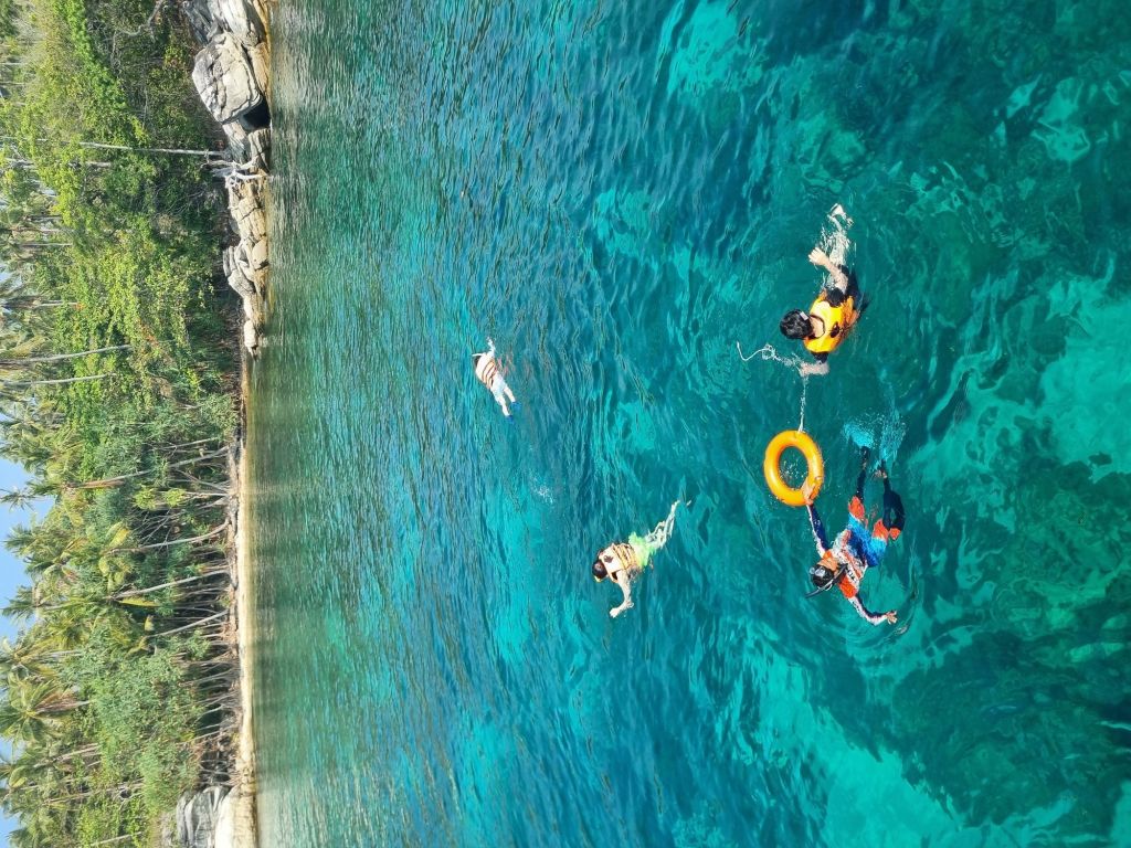 라차섬 스노클링 포인트에서 스노클링을 진행합니다.