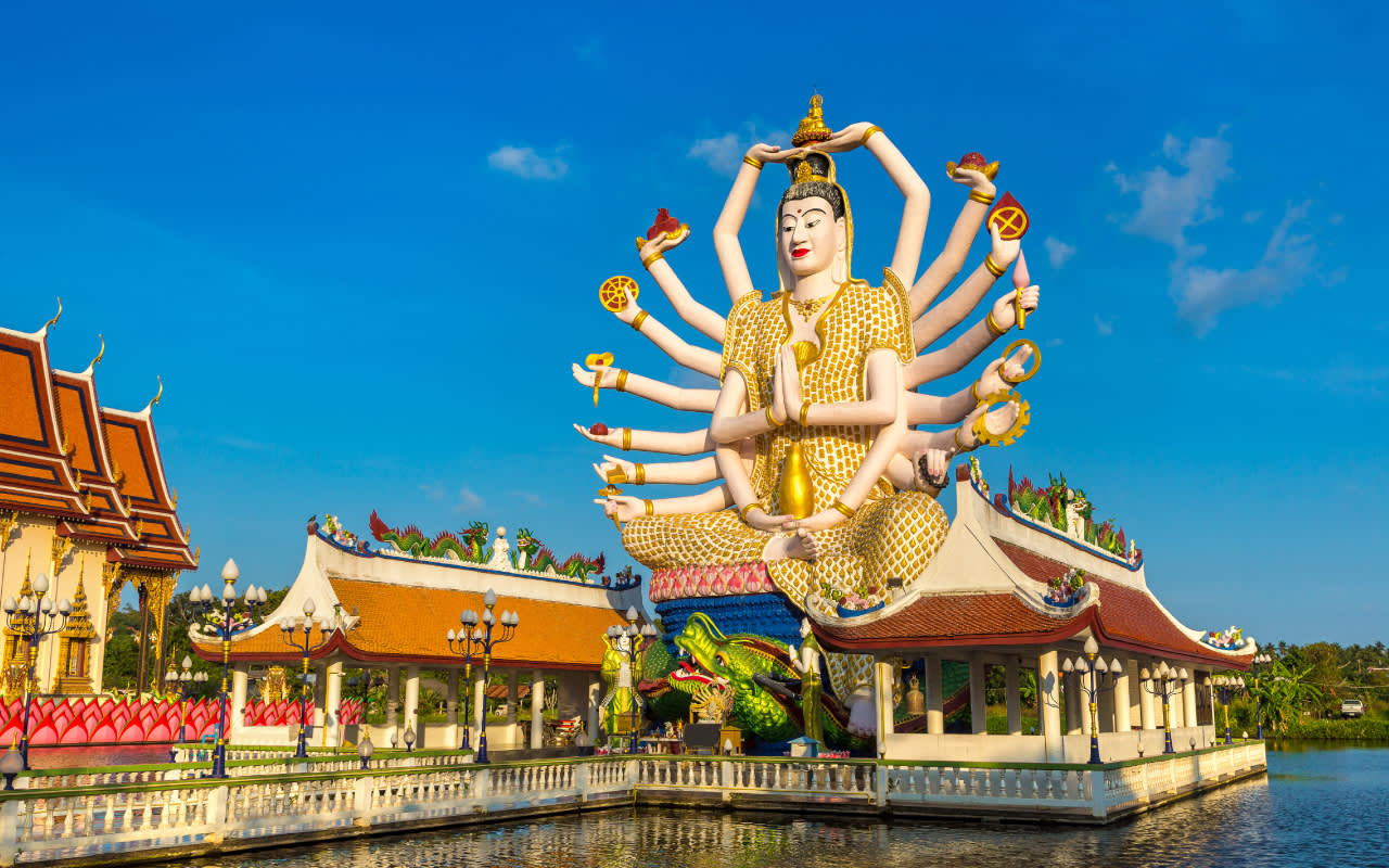 * 정교한 태국-중국 건축물과 자비의 여신인 관음의 눈에 띄는 18개 팔 조각상이 있는 활기찬 사원 단지를 탐험해 보세요.