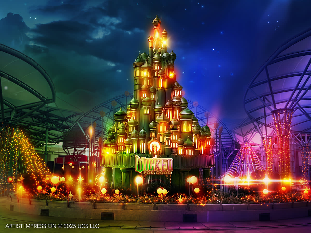 센토사 '위키드: 포 굿' (2025년 11월 10일-2026년 1월 4일) 거대한 설치 작품부터 축제 분위기의 매장과 음식들까지! 위키드 팬이라면 끝없이 펼쳐지는 즐거움을 만끽해보세요. 싱가포르 오셔너리움 외부의 설치물은 모두 무료 입장입니다.